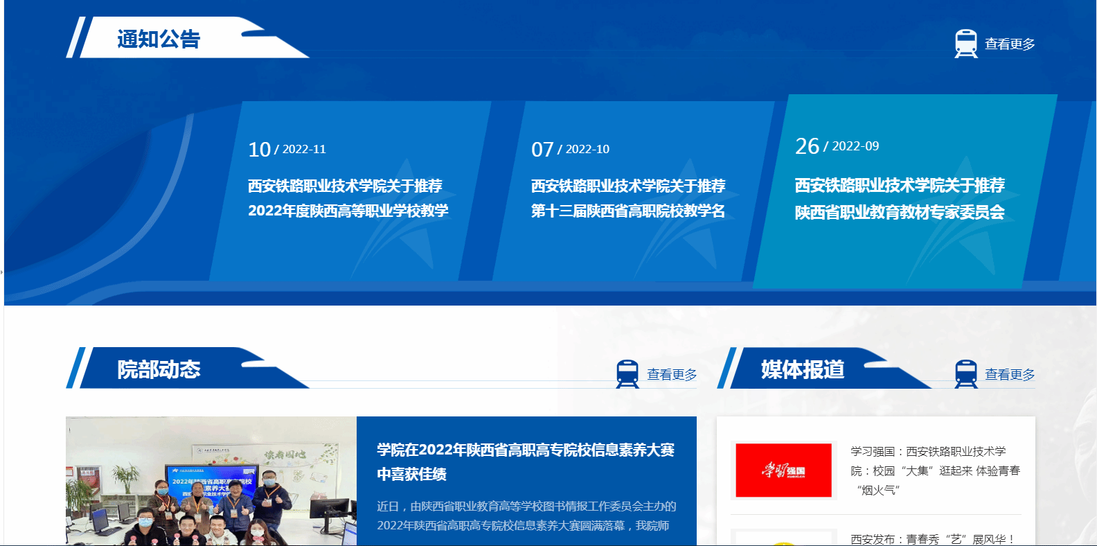 “通知公告”栏目采用列车进站的方式展示信息,既体现了文化特色,又为阅读者提供了灵动有趣的阅读感受。