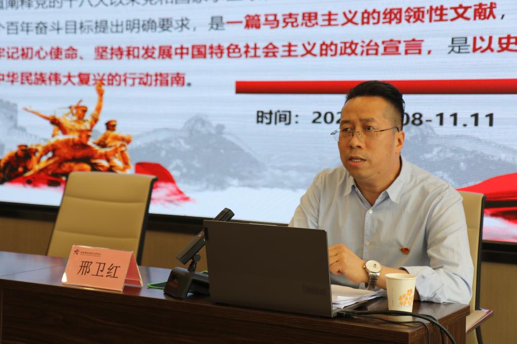 本次培训采取专题讲座、研讨交流、微党课观摩等多种教学方式进行。学院马克思主义学院毛特与形策教研室主任邢卫红副教授以《习近平新时代中国特色社会主义思想的提炼和丰富》为题,重点解读了《决议》对习近平新时代中国特色社会主义思想的创立、回答的重大时代课题、内涵、历史地位等内容的新提炼和丰富发展。学院马克思主义学院毛特与形策教研室副主任张赪老师作了《深入领会党百年奋斗的历史经验》专题报告,从百年党史的发展历程逐一分析了“十个坚持”的思想内涵。省委党校党史教研部主任苗光新教授,以《传承党百年奋斗宝贵经验 奋力实现第二个百年奋斗目标》为题,从党的十九届六中全会《决议》的主要内容及内在逻辑、实现第二个百年奋斗目标的有利因素和挑战以及传承党百年奋斗宝贵经验,奋力实现第二个百年奋斗目标等三个方面进行了详细解读。