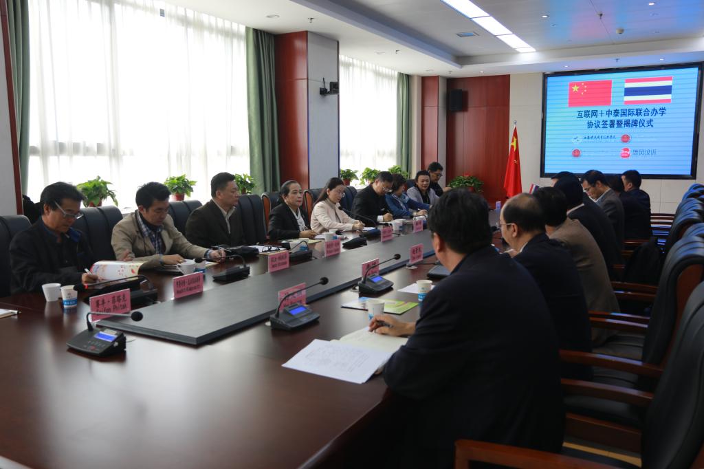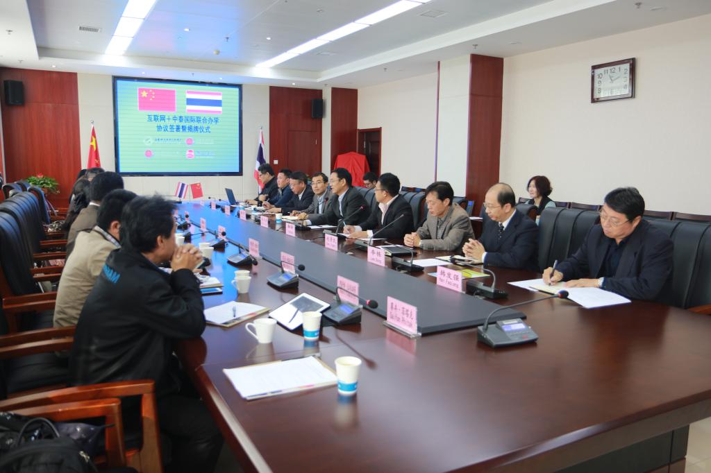 唐风国际教育集团总裁李劲松在致辞中表示,作为中泰合作的推动者和参与方,愿意继续服务于两校的教育合作。他分享了企业在国内高等院校合作办学、课程建设、人才培养等方面的实践成果和经验,阐述了职业教育对外开放的重要性和意义。他希望各方在“互联网+”背景下,不断深入拓展国际交流合作的模式与范围,通过国际教育云平台达成汉语教育、专业课学习、留学与外派等多方面的深入合作,为进一步扩大“一带一路”国家高等教育合作打下基础。