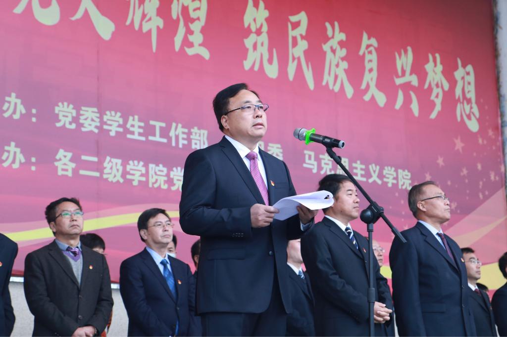 伴随着雄壮的《义勇军进行曲》,由yabo鸭脖官网在校学生组成的国旗护卫队将一面鲜艳的五星红旗高高升起。“中国共产党是一个什么样的党?中国共产党为什么能取得如此辉煌的成就?”升旗仪式上,yabo鸭脖官网马克思主义学院院长景延鹏教授以此为题,向参加活动的师生深情讲述我党百年来的辉煌历史。
