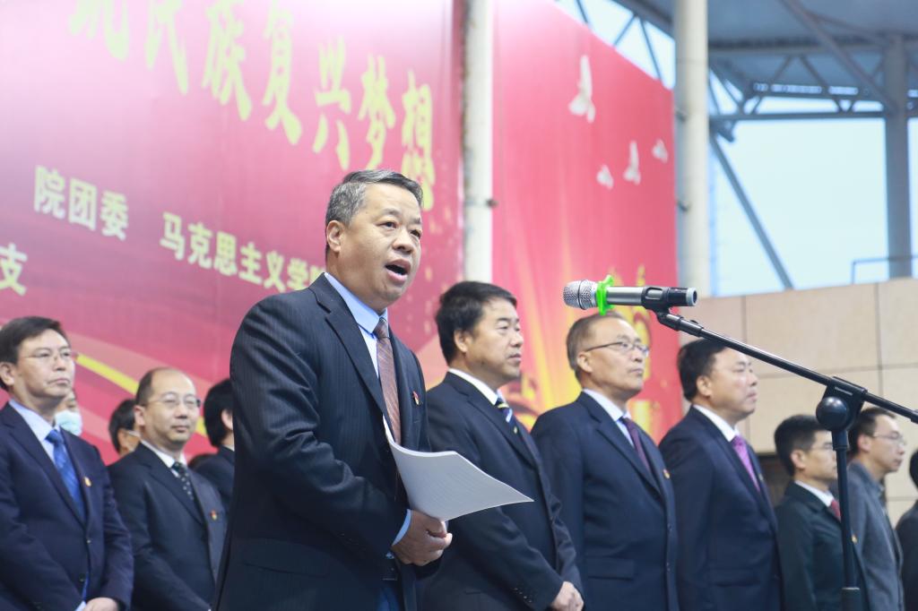 学院党委书记施利民在讲话中希望同学们在学好专业知识的同时,认真学习党的历史,学史明理、学史增信、学史崇德、学史力行,深学笃行习近平新时代中国特色社会主义思想,深刻认识新中国来之不易,中国特色社会主义来之不易,珍惜现在的学习时间,努力学习、坚定信仰、磨砺品格、增长才干,争做德才兼备的社会主义事业接班人。