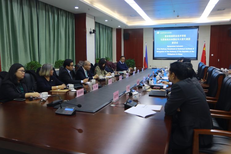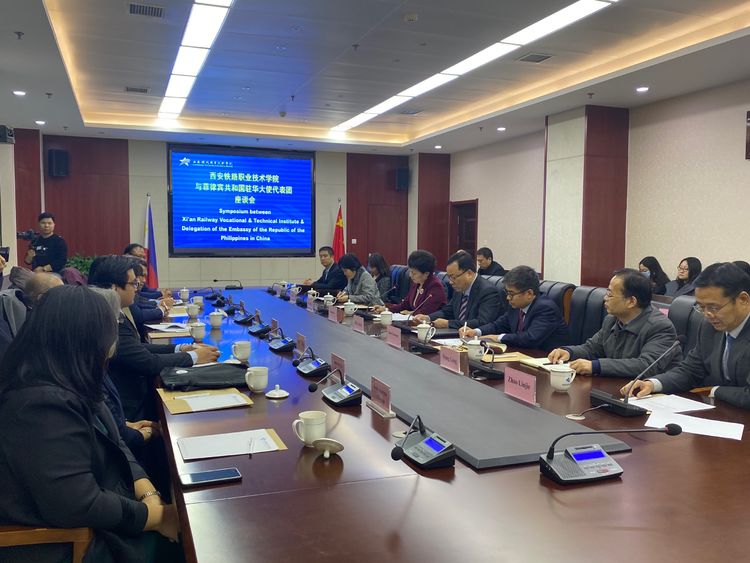 12月11日下午,罗马纳大使先生率代表团一行十人,在中国人民对外友好协会、陕西省人民对外友好协会、西安市委外办、西安市教育局等相关部门领导及中菲企业代表的陪同下,来鸭脖参观考察,并就中菲轨道交通专业领域的职业教育交流与合作展开洽谈。