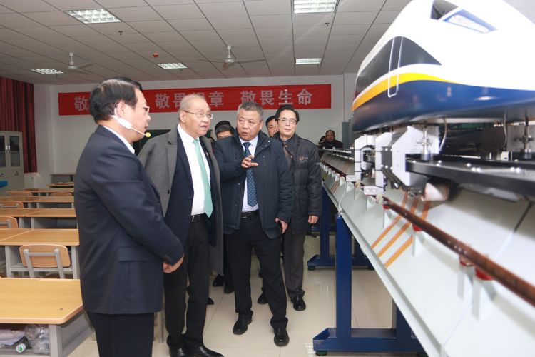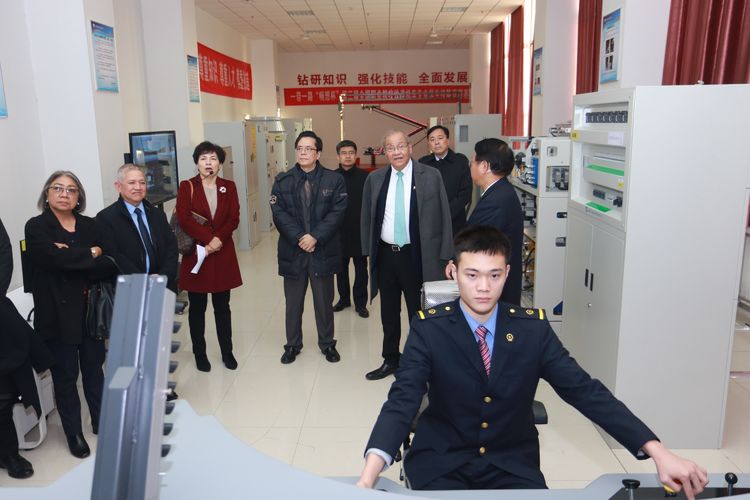 代表团参观了牵引动力学院实训室,罗马纳大使对学院的轨道交通专业建设和实训设备表示由衷赞赏,并亲身体验了动车组模拟驾驶。