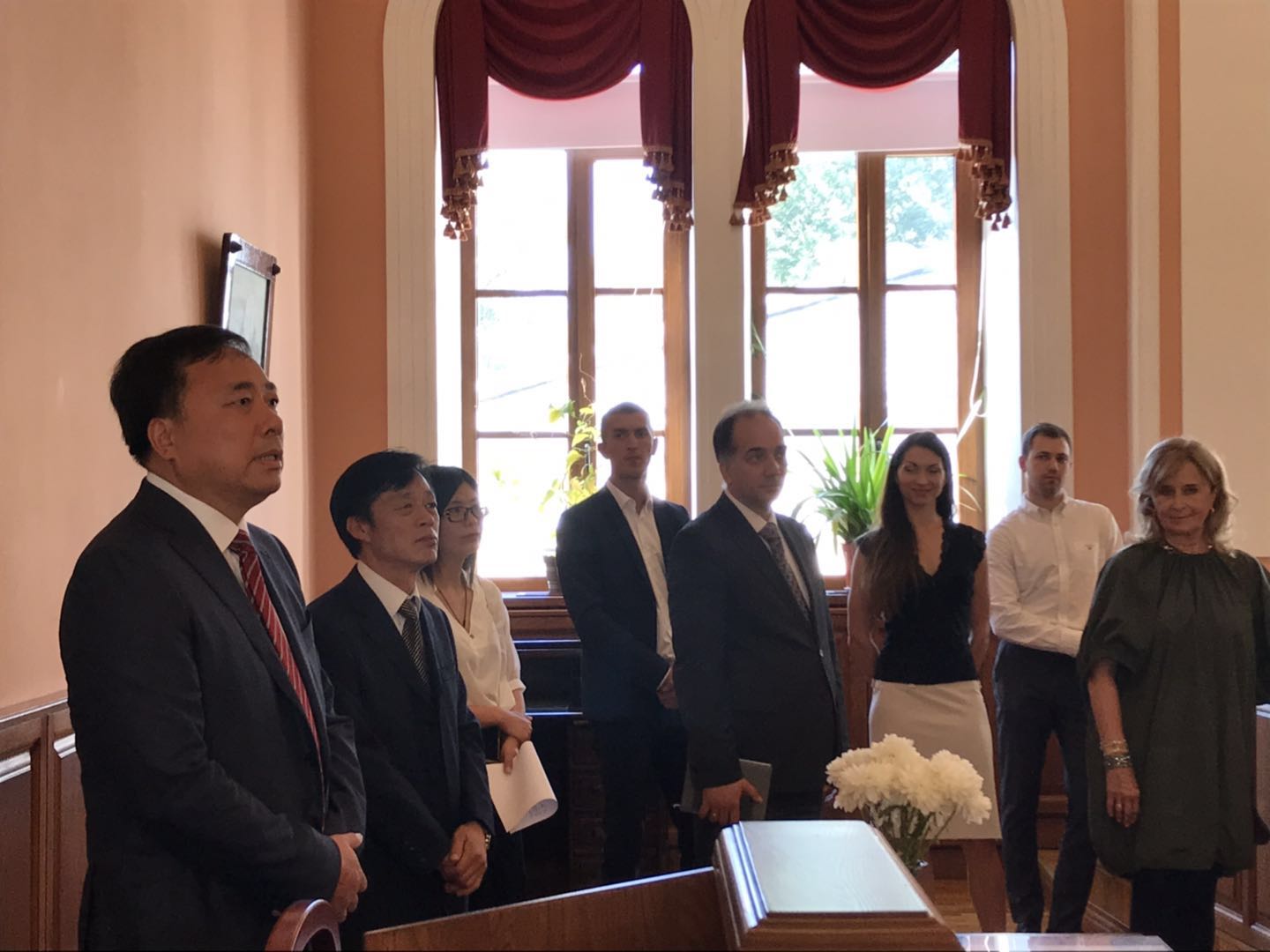 在门捷列夫工作室,鸭脖首批留学生齐聚一堂,喜迎母校领导和老师。在听取同学们一年来的留学生活和成长经历后,施利民书记发表了热情洋溢的讲话。他代表学院向同学们表达了亲切的问候和美好的祝福,同时,提出了三点希望:一要牢记学校和家长的嘱托,努力适应新环境,珍惜良好的学习机会,发奋图强,争取优异成绩;二要加强团结,互帮互爱,展现中国大学生良好的精神风范;三要汲取圣交大百年历史文化积淀,全面提升自己综合素质,以全新的国际视野,积极投身到“一带一路”建设中去,为祖国的繁荣富强做出贡献。