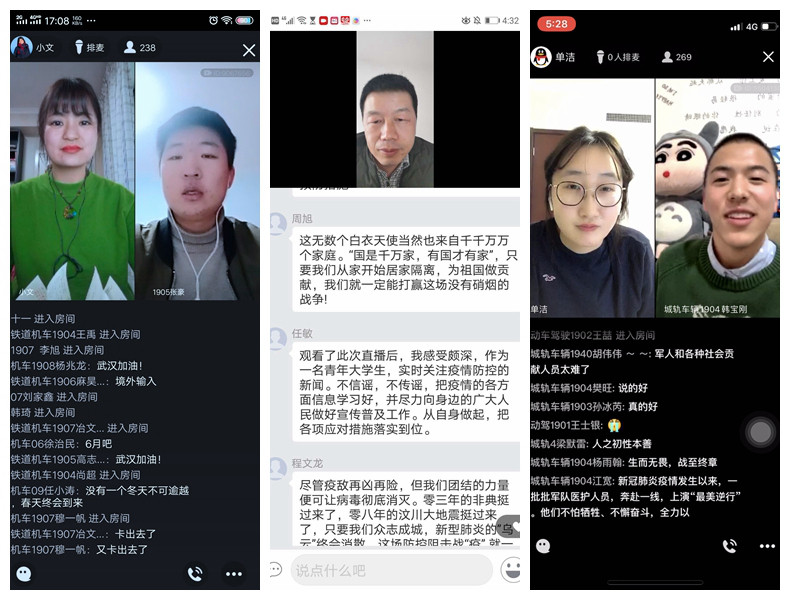 铁道机车专业李建林同学说,一场疫情让我们明白生命的可贵,疫情之下没有一个人可以置身事外,我们不仅要保护好自己也要尽量帮助他人,用自己的努力奋斗书写自己美好的青春,让自己拥有不样的青春。一方有难八方支援,作为高校青年学子,我们要积极响应党和国家的号召,携起手来共同战胜疫情。