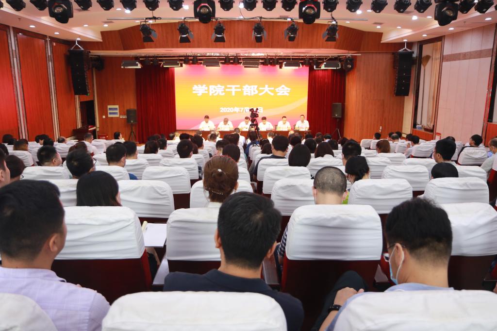 7月31日上午,学院召开干部大会,全体处科级以上干部参加大会,党委书记施利民、院长赵春平分别讲话。会议由党委副书记邓耀斌主持。