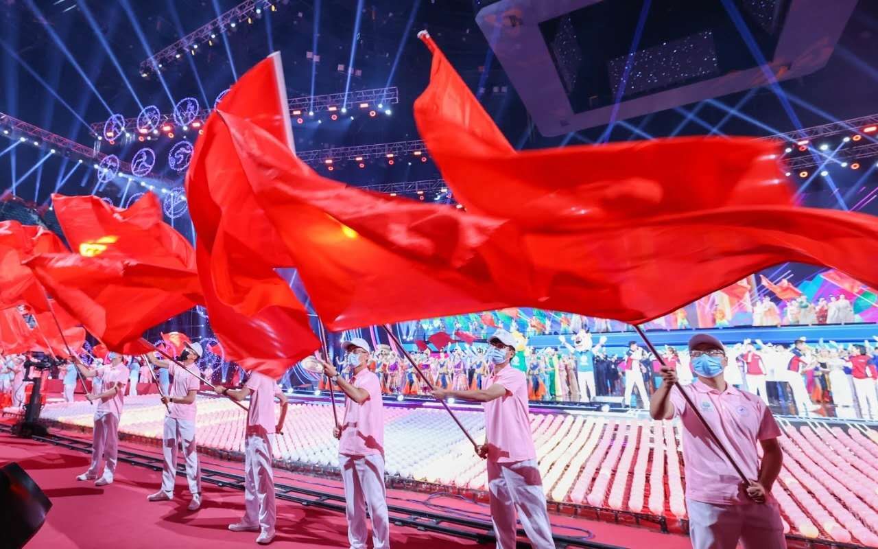 自5月上旬接到承担十四运会和残特奥会倒计时100天活动来,学院领导高度重视,在相关职能部门与各二级学院的通力协作下,完成了300名学生的选拔与培训工作,保障了学生彩排与正式活动的交通、服装鞋帽的设计、学生保险、用餐以及核酸检测等。6月2日起,同学们连续5天在奥体中心进行每天不少于7小时的排练,队形变化、摇旗欢呼、歌曲跟唱等,按照导演组要求圆满完成各项彩排任务,同学们吃着最简单的餐食,露出最灿烂的笑容。