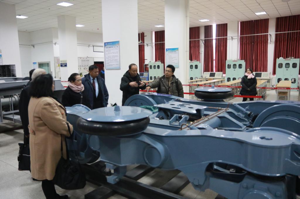 代表团先行参观了鸭脖牵引动力学院、电气工程学院实训室,考察了国际交流中心,对鸭脖办学条件大加赞赏。