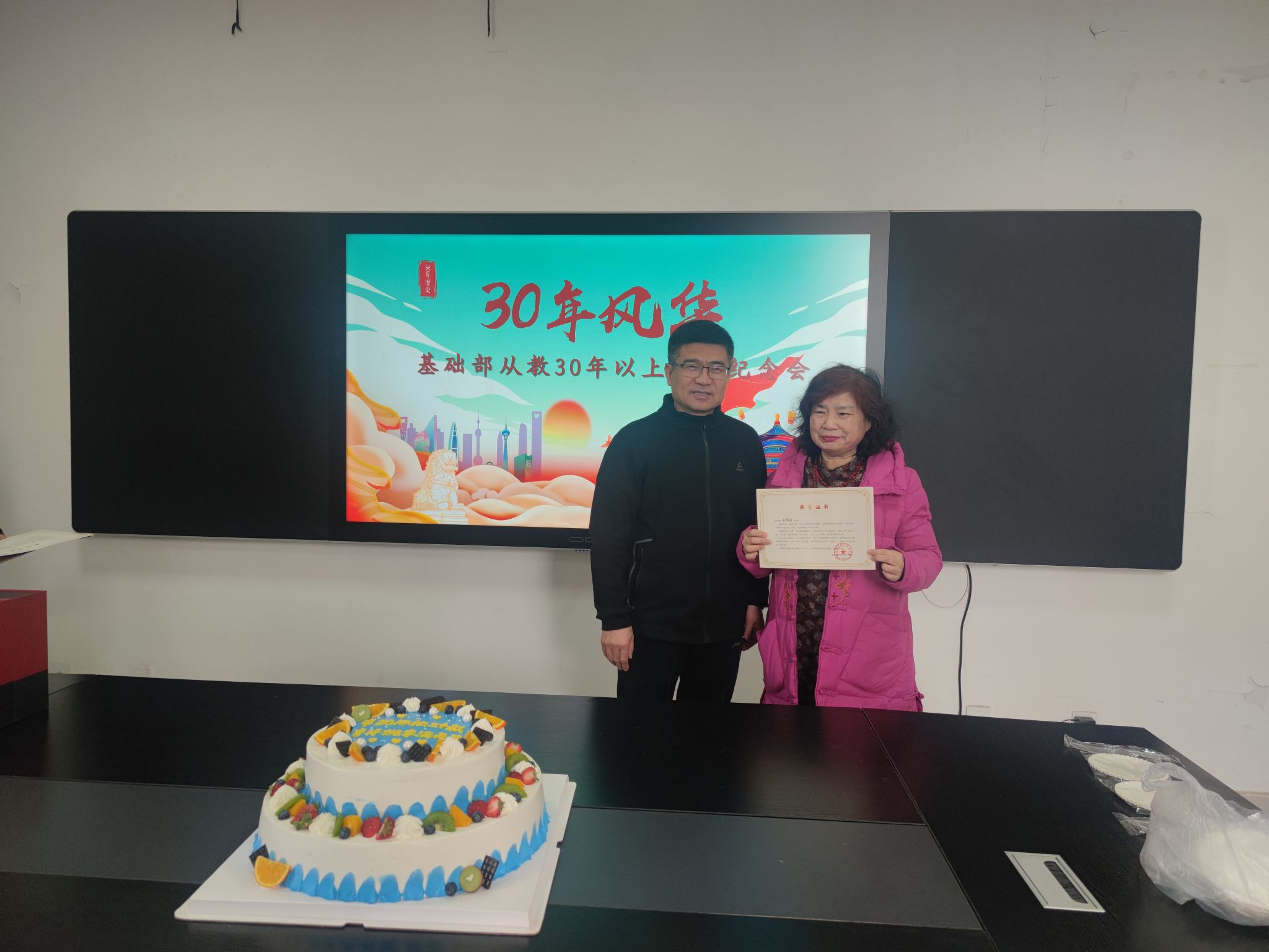 最后,赵春平院长为从教30年教师颁发了荣誉证书和纪念品,并合影留念。