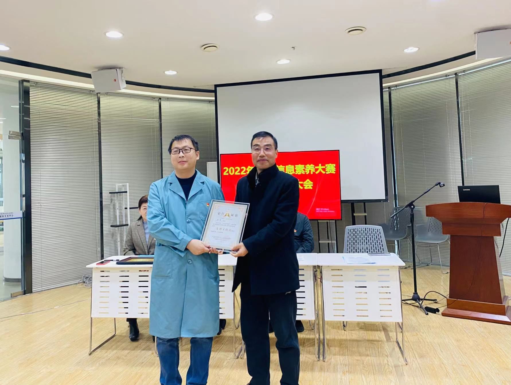 安学武为国赛中获得“最佳组织奖”的单位和学院比赛中获得特等奖的学生颁奖;滕勇为国赛中获得“先进工作者”称号的陈晔和学院比赛中获得优秀组织奖的单位颁奖;郭小莉为学院比赛中获奖的老师和学生颁发荣誉证书。