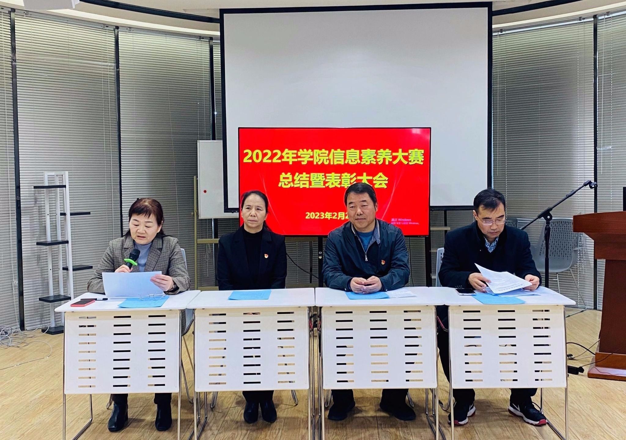 2月28日下午,2022年学院信息素养大赛总结表彰会顺利举行。学院副院长安学武、教务处处长滕勇、党委学生工作部部长郭小莉、图书馆馆长袁素瑛及部分师生代表参加总结表彰大会。会议由图书馆办公室主任黄幼菲主持。