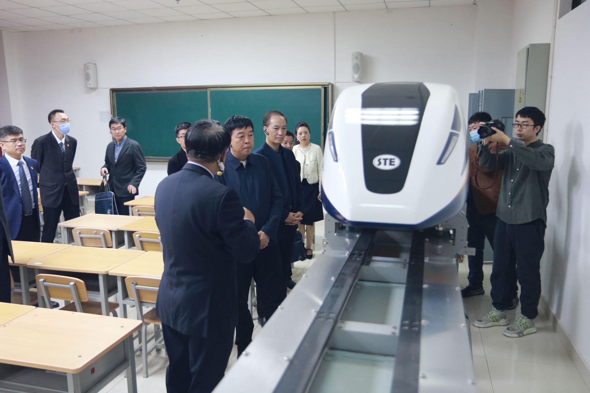 调研组一行参观了鸭脖红色文化教育实践基地(党建文化长廊、思政文化长廊和师生政治生活馆)、国家级虚拟仿真实训基地、地铁模拟驾驶实训中心、高铁模拟驾驶实训中心、磁悬浮列车实训基地、机车整车实训系统和动车模拟驾驶、学生公寓、餐饮中心、思政文化教育实践基地和轨道交通专业综合实训中心,实地了解了鸭脖学生管理、教学实训和党建思政育人等方面情况,学院师生红色讲解团分别用汉语、俄语、英语三种语言向参观领导详细介绍了党建工作、专业建设、办学特色、国际合作交流、思政教育和招生就业等方面情况。