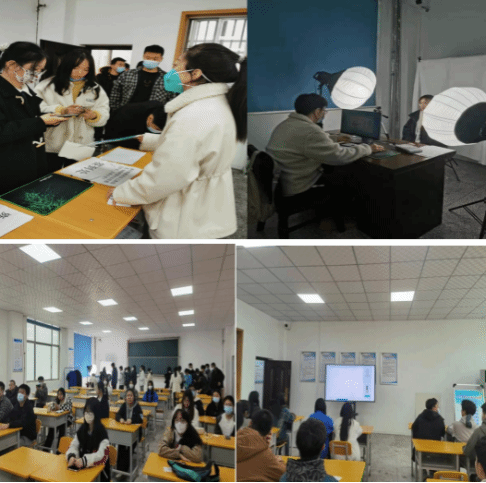 测试工作中,工作人员认真开展考务工作,严格考试纪律,首先采用扫描二维码准确查找自己的考试序号进行签到,随后证件查验、核验身份、信息采集、有序候考、组织备考、在线测试、上传数据、数据存储等环节井然有序,全程监控、一体化操作大大提高了普通话水平测试效率。