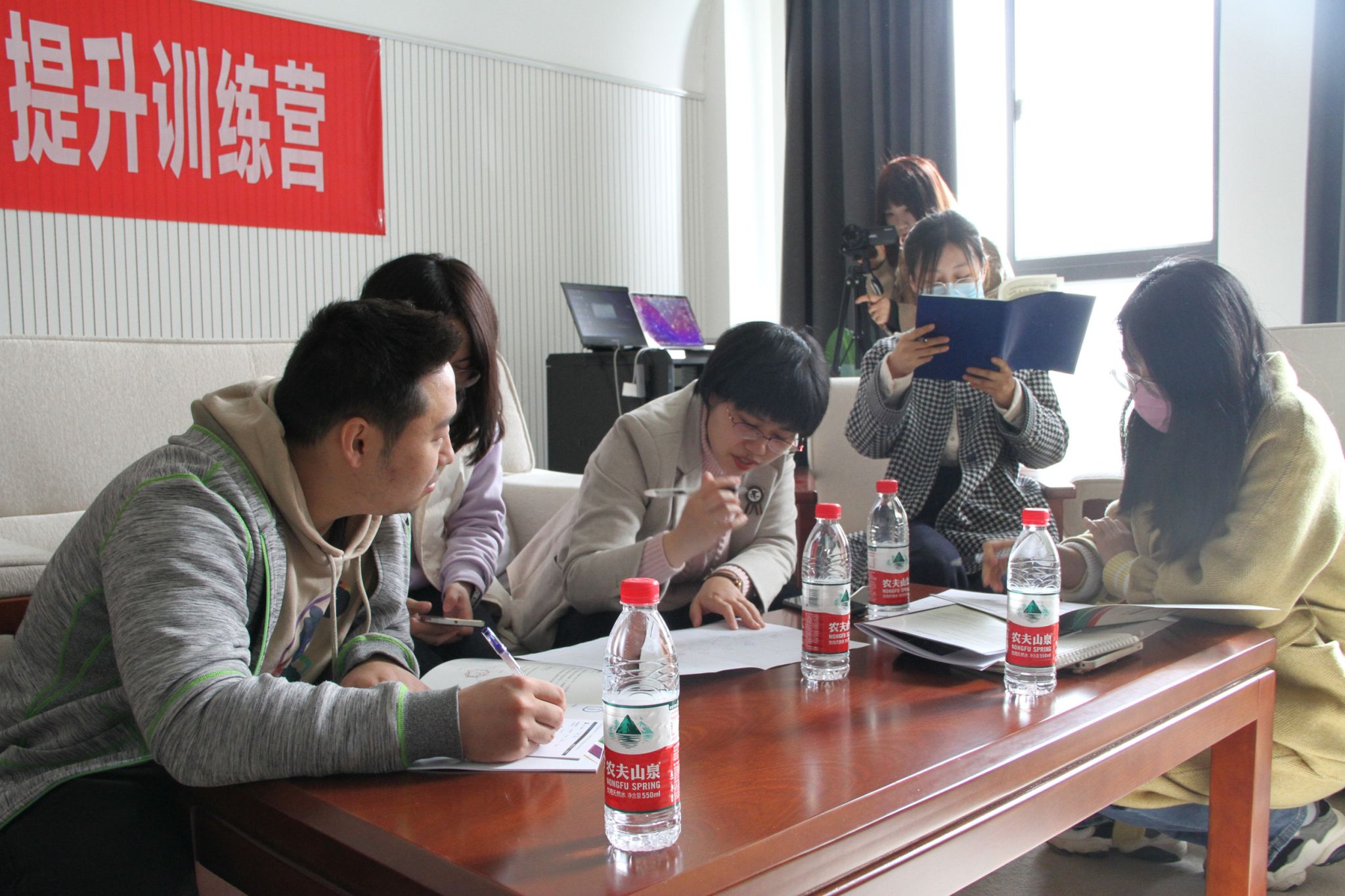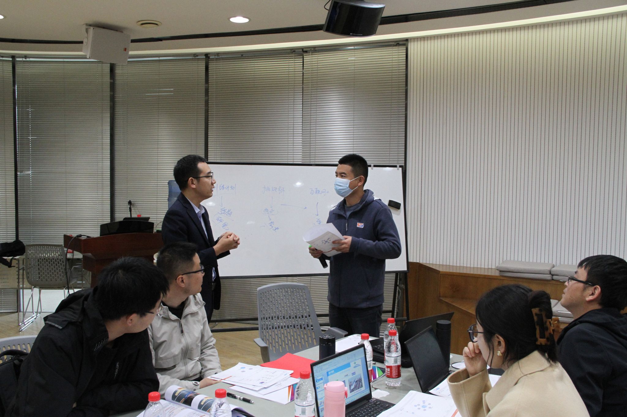 培训间隙,学院院长赵春平在副院长安学武、教务处处长滕勇陪同下前往训练营,慰问培训专家及参训教师。赵春平代表学院对专家的辛勤指导表示由衷的感谢;希望参训教师利用好本次培训机会,充分汲取“互联网+”大赛指导先进经验、思路,提升创新创业指导能力;要求各部门做好培训保障,为“互联网+”大赛的顺利开展保驾护航。