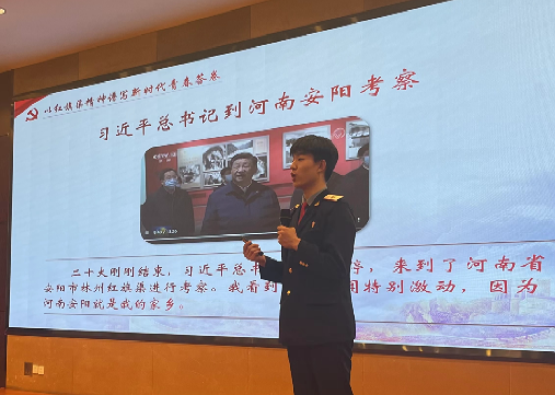 胡一匡通过“当代青年还需要艰苦奋斗吗?”这一问题做导入,以《以红旗渠精神谱写新时代青春答卷》为题,讲述了一堂精彩的思政课。胡一匡从习近平总书记在红旗渠考察时的重要讲话精神中深刻学习和领悟到了伟大的红旗渠精神,从而号召广大青年学生,结合所学专业继续艰苦奋斗,谱写新时代青春答卷。