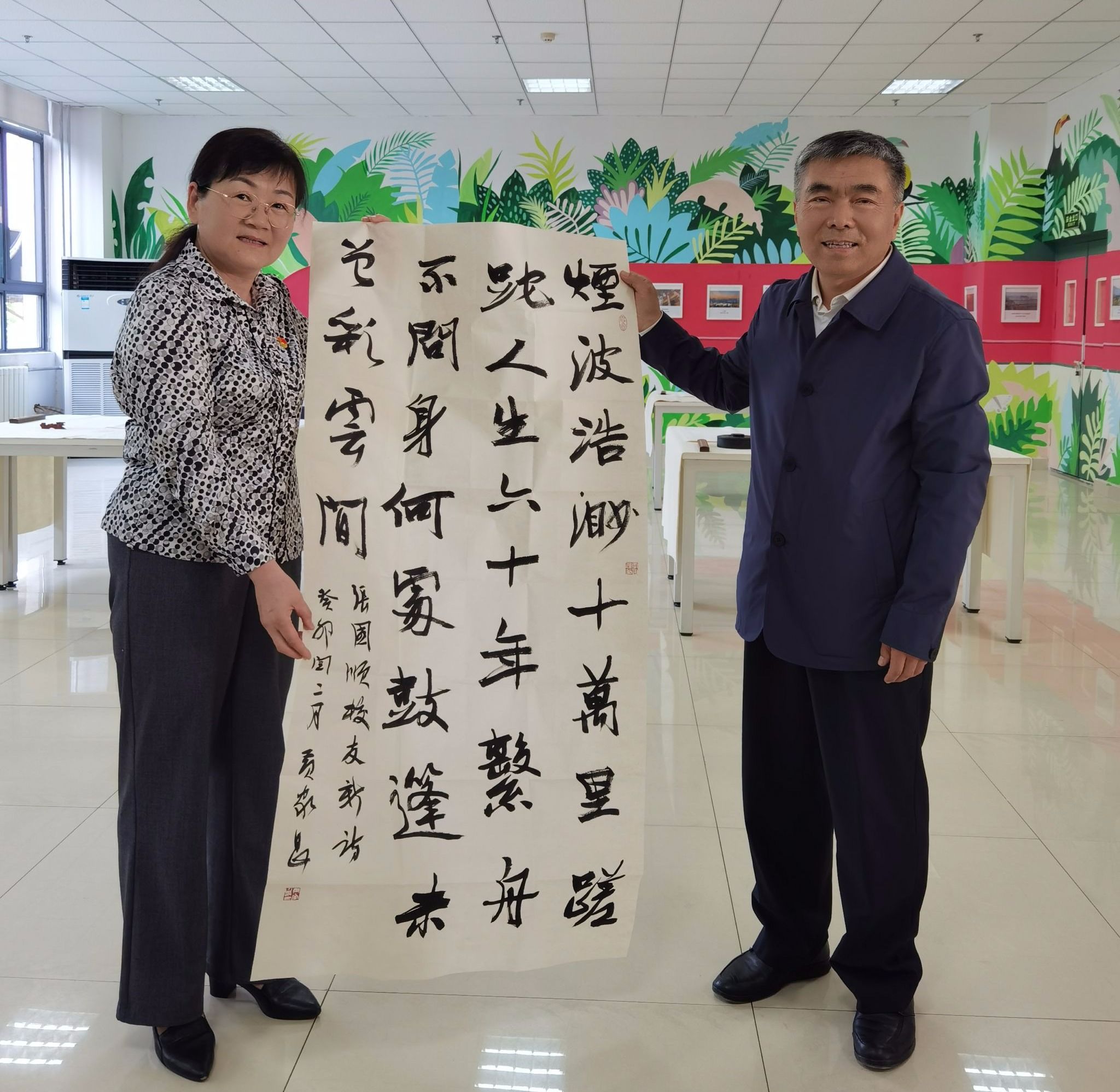 赵春平为两位书法家颁发收藏证书,并发表讲话指出,书法艺术是中华优秀传统文化,此次活动将书法寄情抒怀的艺术表达方式与传承传统文化的社会功能相结合,搭建起了学生、教师和书法名家共同参与的活动平台,通过书法展示、交流,激发了师生热爱书法、学习书法的热情,营造了浓厚的校园文化氛围。希望各学院、各部门继续以习近平新时代中国特色社会主义思想为指导,把打造书香校园和发展特色校园文化结合起来,进一步传承和发扬中华优秀传统文化。