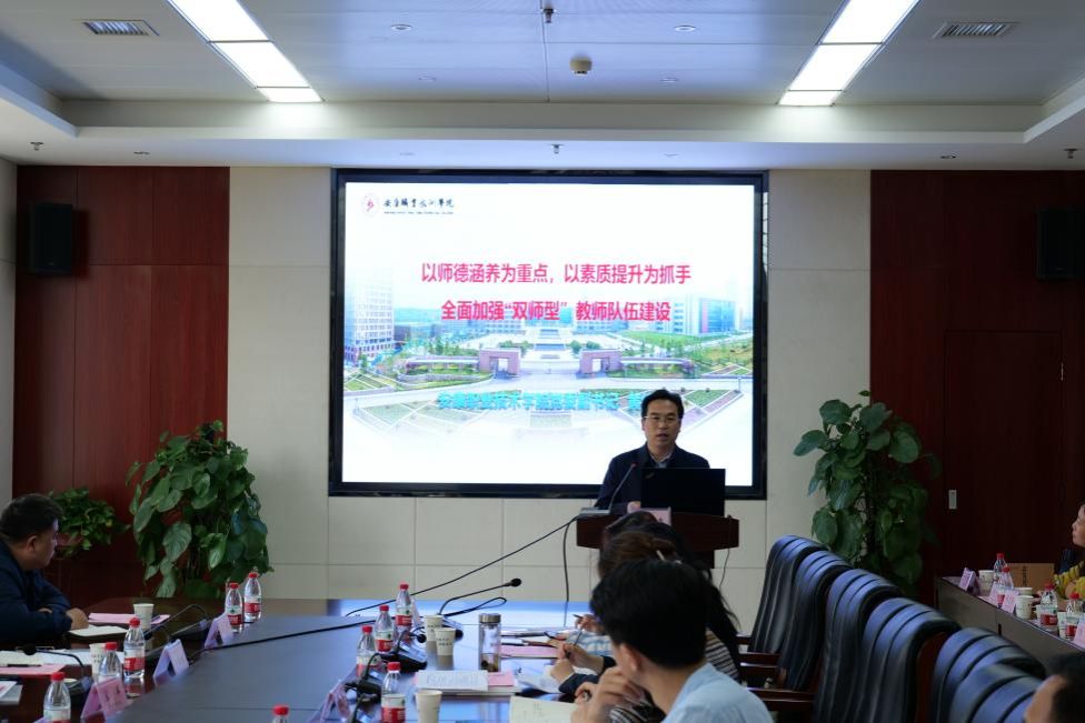 鸭脖发展规划处处长马军强以“德技并修、校企共育,打造高水平、结构化‘双师型’教师队伍”为主题,从突出师德师风引领、优化“双师型”教师发展路径,构筑多元合作平台、打造“双师型”教师培育载体,校企双向互动交流、强化“双师型”教师梯队建设,校企共建“双师”素质教师团队、推动学校高质量发展四个方面进行了交流发言和经验分享。