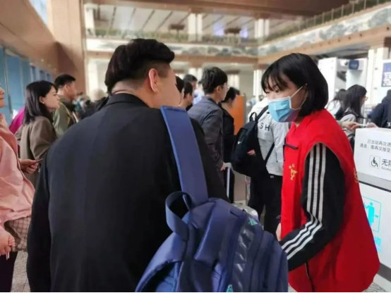 4月28日下午,志愿者们完成了所在站点的岗前安全培训后,于4月29日正式上岗。志愿者们精神饱满,认真负责,微笑面对每一名旅客,引导大家有序排队,帮助旅客使用自助售票机取票,在进出站口的闸机疏导人群、维持秩序,解答旅客们关于买票、取票、退票、改签的各种问题,努力提供更好的购票服务体验,并围绕便民利民和帮扶重点旅客等方面集中开展各项志愿服务。