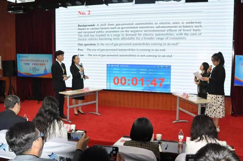今年职业院校技能大赛是《教育部办公厅关于印发〈全国职业院校技能大赛执行规划(2023—2027 年)〉的通知》实施的第一年,对赛制和赛项规程进行了重新规划和修定。新增加了“师生同赛”、“教师赛道”和“学生赛道”等创新环节。本次赛事安排时间紧、任务重、要求高,学院领导亲自挂帅,各部门全力配合协助,克服重重困难,比赛终于如期举办。本次比赛在环节和规程上较以往有很大程度的改变,以至于竞争程度更加激烈,共由“中国故事”“情景交流””职场描述”“职场辩论”四个环节组成。其中“情境交流”和“职场辩论”两个环节变为师生同场竞技,全面考查师生职场情境中解决复杂问题的能力。通过“师生同赛”的形式创新竞赛方式,师生结为竞赛共同体,一同备赛,同台参赛,考查教师、学生的听说等综合语言运用能力,体现师生的团队合作,以及应用英语进行沟通的能力。