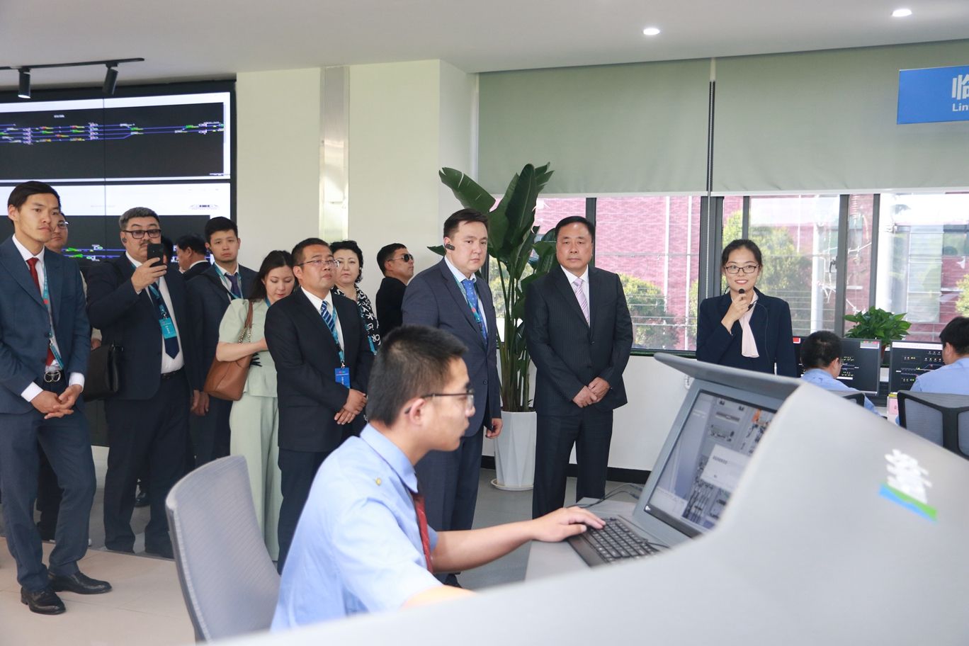 努拉利·布凯坎诺夫一行参观了学院轨道交通综合实训中心、牵引动力综合演练场、动车组模拟驾驶实训室、复兴号动车组模拟驾驶实训室、磁悬浮列车实训室等学生实训场所。