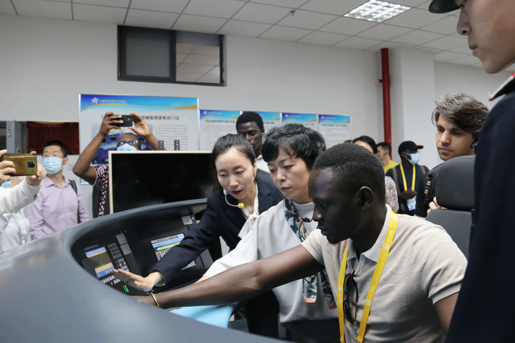 外国记者被“和谐号CRH380AL型动车组”的模拟驾驶室所吸引,纷纷走进模拟驾驶室,体验驾驶中国高铁。在磁浮列车实训室、城市地铁实训系统、复兴号列车模拟驾驶实训室,大家对我国轨道交通的领先技术及鸭脖先进完备交互式的实训设备发出由衷赞叹。