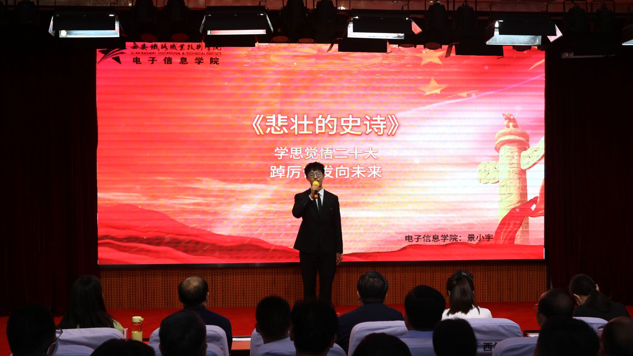 大赛启动以来,各二级学院党总支高度重视,精心组织安排,经过层层选拔共有10位选手脱颖而出。同学们饱含深情歌颂了用生命捍卫“红色电波”的革命烈士李白、冒死为八路军送粮不幸被捕牺牲的张绍良、用胸膛堵住敌人枪眼的钢铁战士黄继光、60多年深藏功名的战斗英雄张富清、扎根国防事业勇于冲锋在前的排雷英雄杜富国……一个个甘于奉献、不畏牺牲的英雄人物,一段段感人肺腑、催人泪下的红色故事,选手们用精彩的演绎赢得阵阵掌声,引发现场观众强烈共鸣。