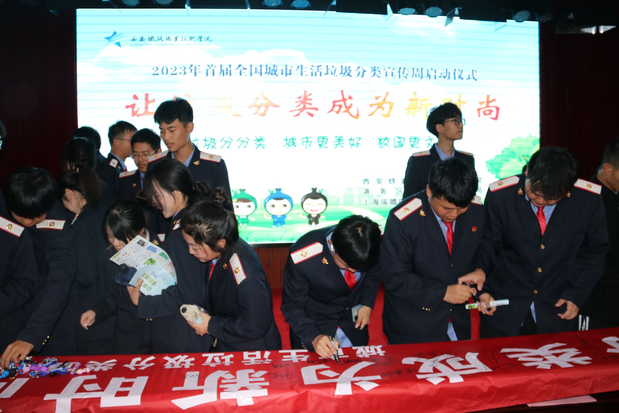 会后,所有参会人员在“让垃圾分类成为新时尚--城市生活垃圾分类宣传周”横幅上签名。