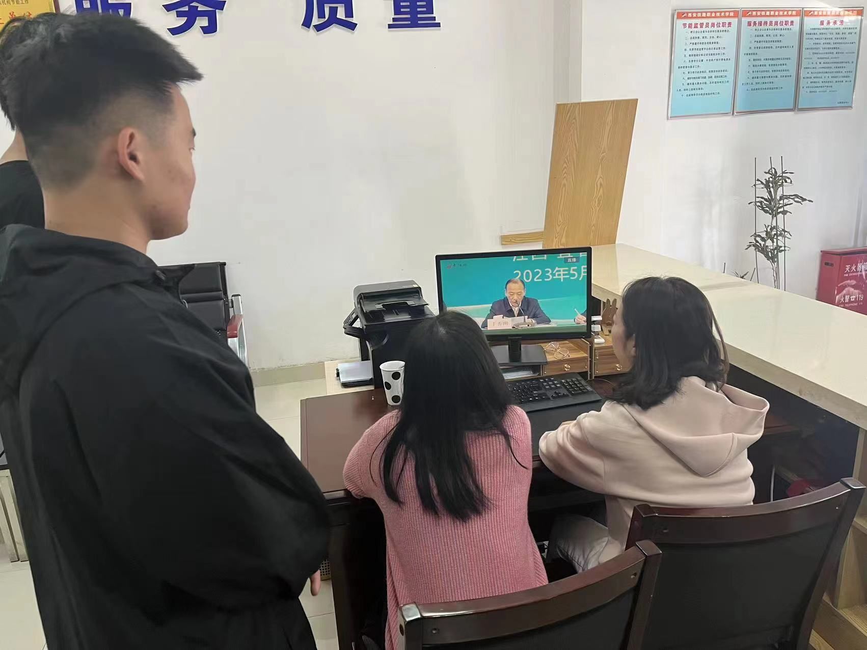据悉,国家住房和城乡建设部、教育部、国家机关事务管理局、中华全国总工会、共青团中央等将每年五月第四周设立为全国城市生活垃圾分类宣传周,今年5月22日至5月28日为首届城市生活垃圾分类宣传周。5月24日上午9时,学院后勤基建处能源资源管理员和劳动周学生,通过线上直播集体收看了国家在江西省宜春市举办的公共机构生活垃圾分类示范点建设工作现场会实况。