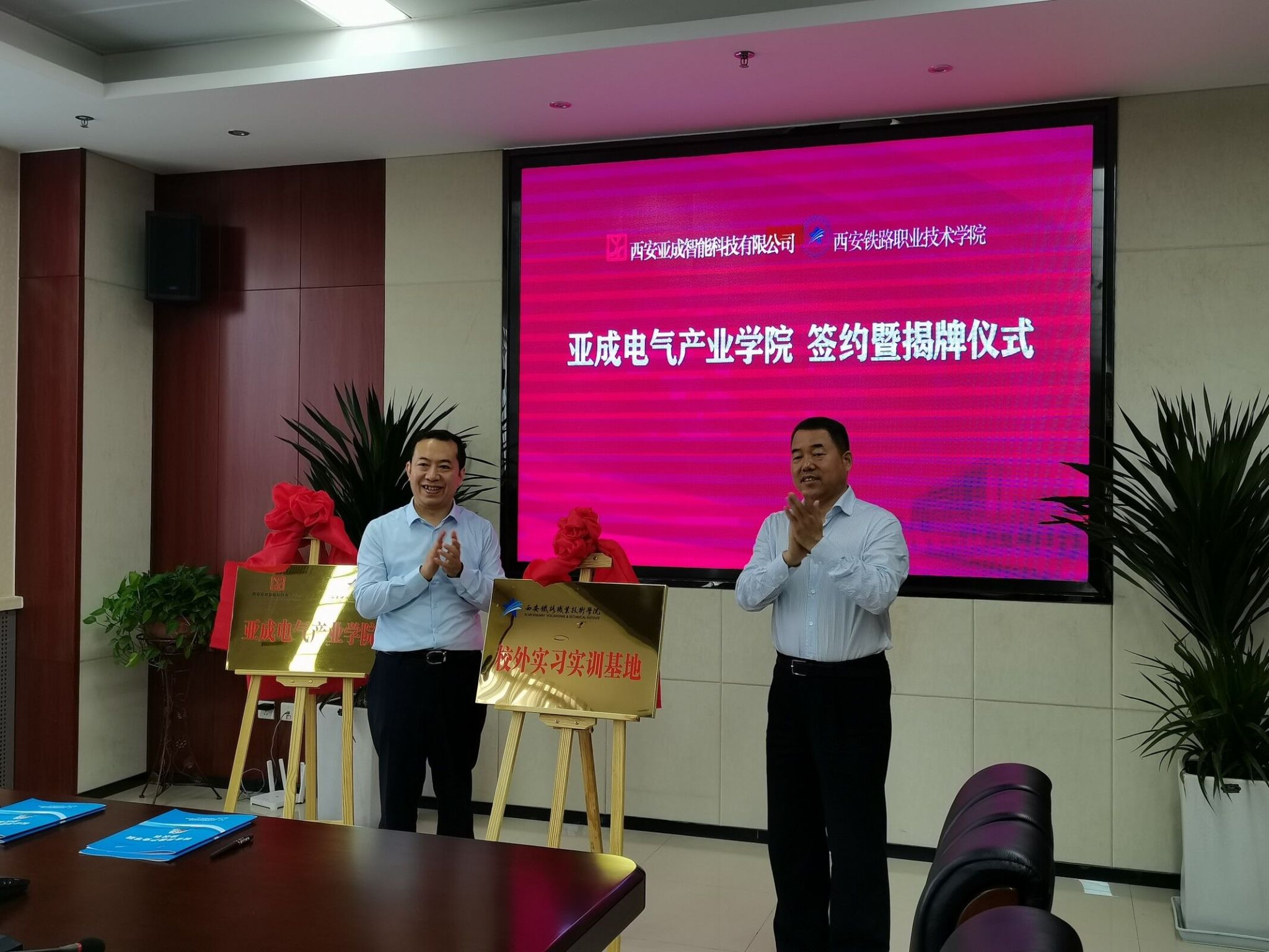 6月1日上午,学院亚成电气产业学院成立签约暨揭牌仪式在五楼第三会议室隆重举行。学院副院长安学武、电气工程学院院长王公强、党总支书记喻朝晖、副院长宋永兴、办公室主任董燕、供用电技术教研室主任苗斌、方彦教授、西安亚成智能科技有限公司董事长闫亚强、副总经理晁炳杰、校企合作部经理任雪婷参加了签约暨揭牌仪式。签约暨揭牌仪式由宋永兴主持。