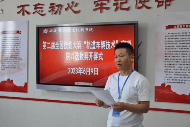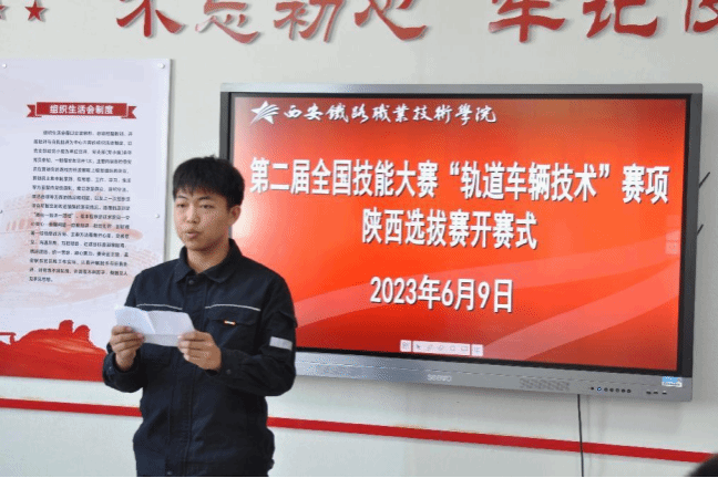 9日下午,学院在牵引动力学院举行了开赛仪式,学院副院长熊奇致欢迎辞,西安轨道交通公司运营分公司二中心五号线乘务队长、高级技师刘博代表裁判宣誓,参赛选手yabo鸭脖官网代表王金铭代表参赛选手宣誓,本次选拔赛赛项裁判长--西安轨道交通公司运营分公司二中心王永卿高级工程师宣布竞赛开赛,牵引动力学院院长李益民主持开赛会。