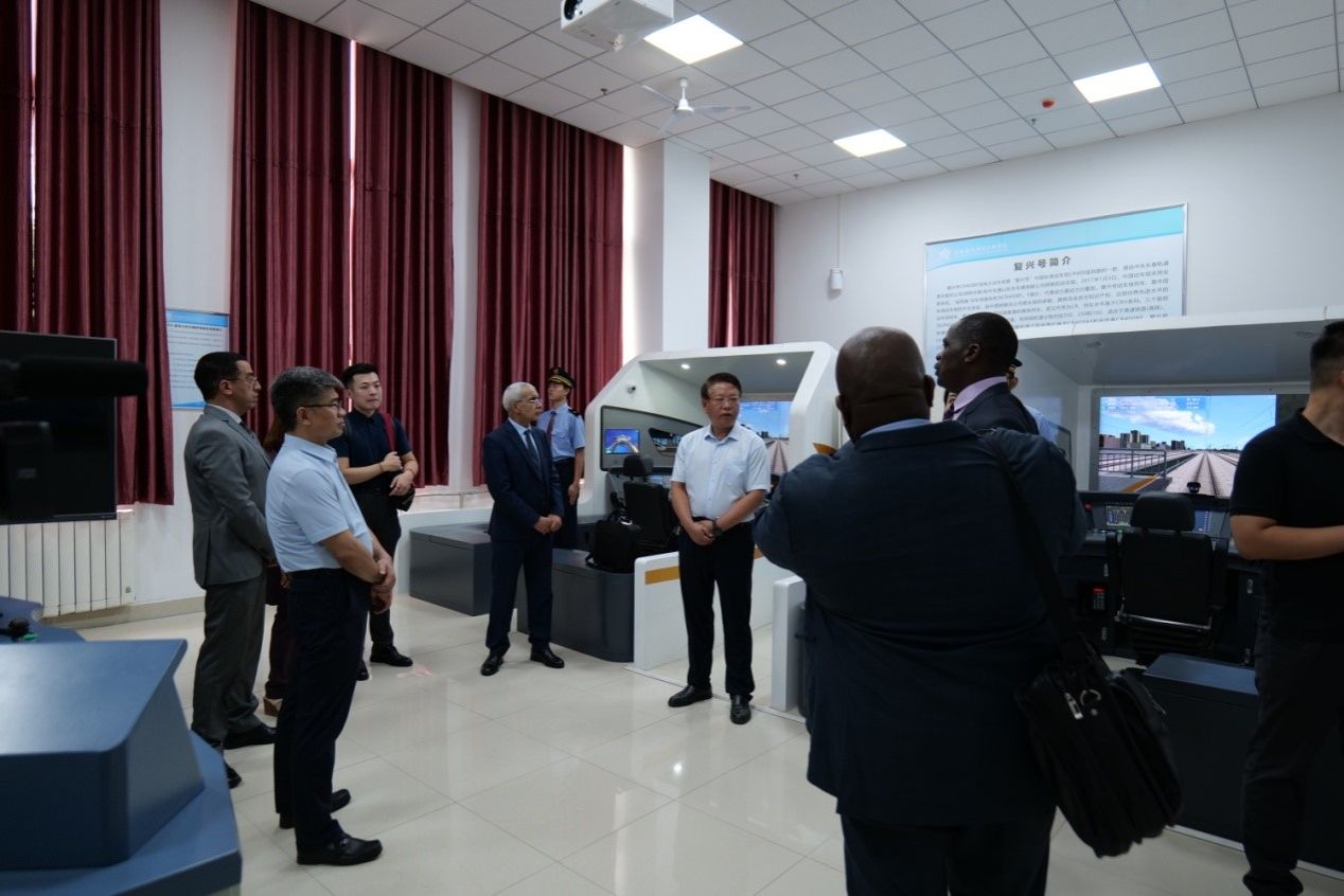期间,津巴布韦、摩洛哥高代表团一行还参观了学院轨道交通综合实训中心、牵引动力综合演练场、动车组模拟驾驶实训室、磁悬浮列车实训室、复兴号动车组模拟驾驶实训室等学生实训中心。