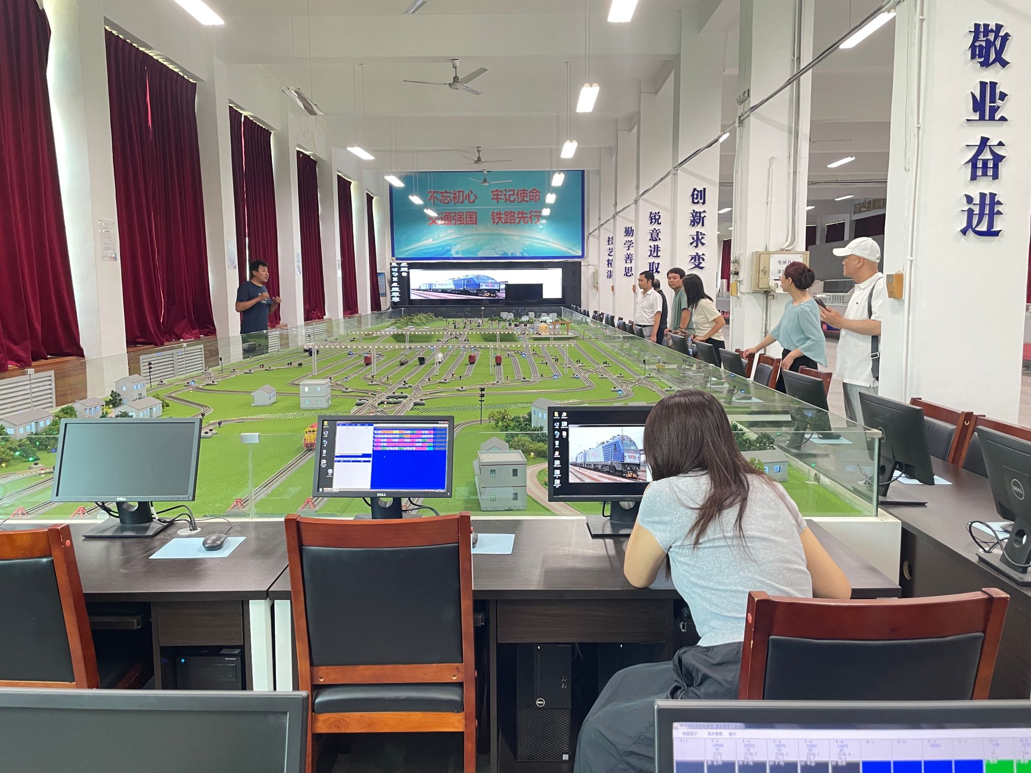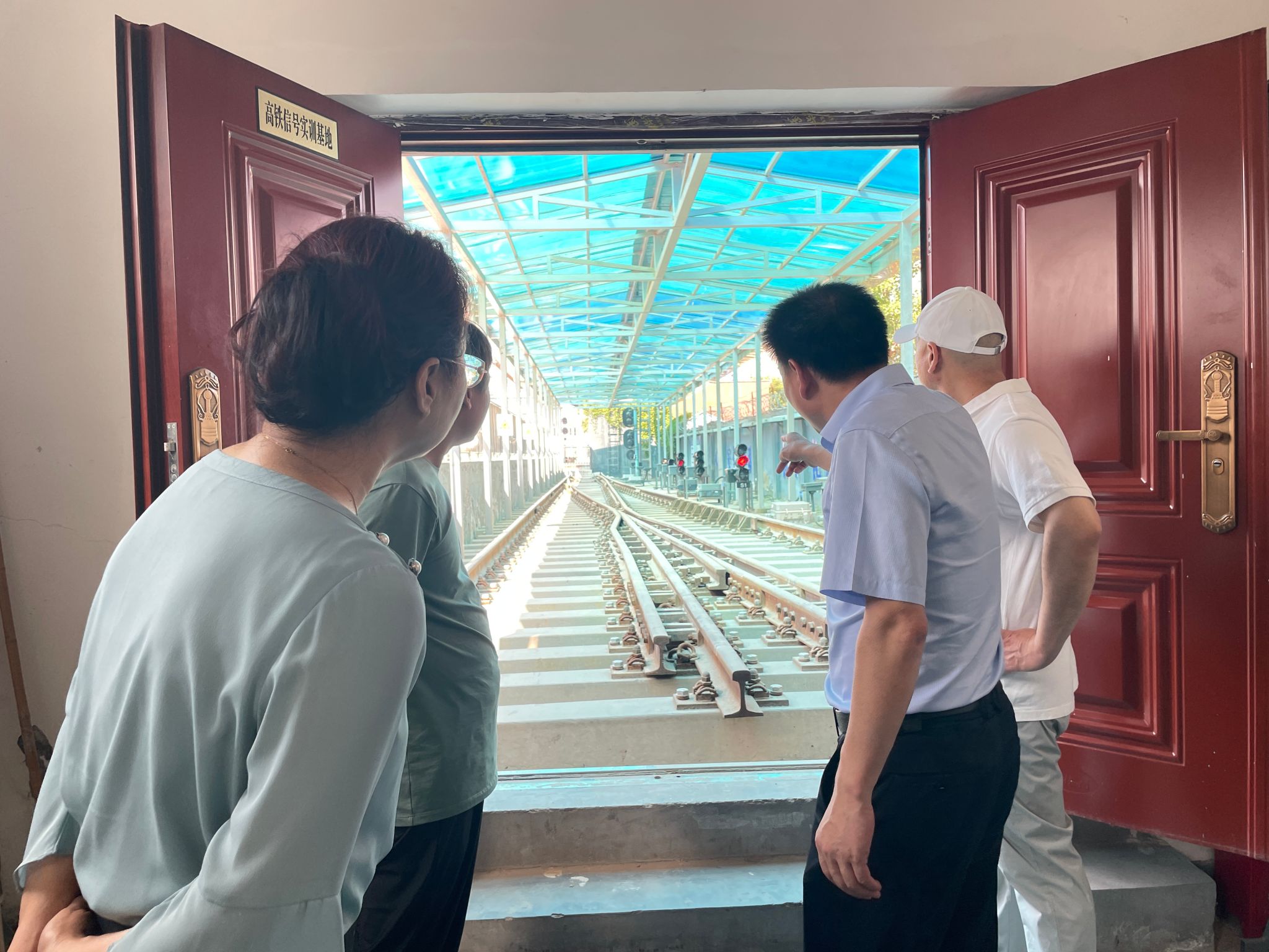 冯国良教授报告了“高铁信号综合维修职业创意体验基地”的功能,让市民和学生在基地里浸润铁路文化、传承铁路精神、体验实战氛围、培育劳动素养和技能,现场对相关的综合演练场、生产性实训基地、模拟生产性工区平台等进行了详细讲解,实验老师现场演示了接发车进站、道岔转换等操作,给专家组人员留下了深刻印象。
