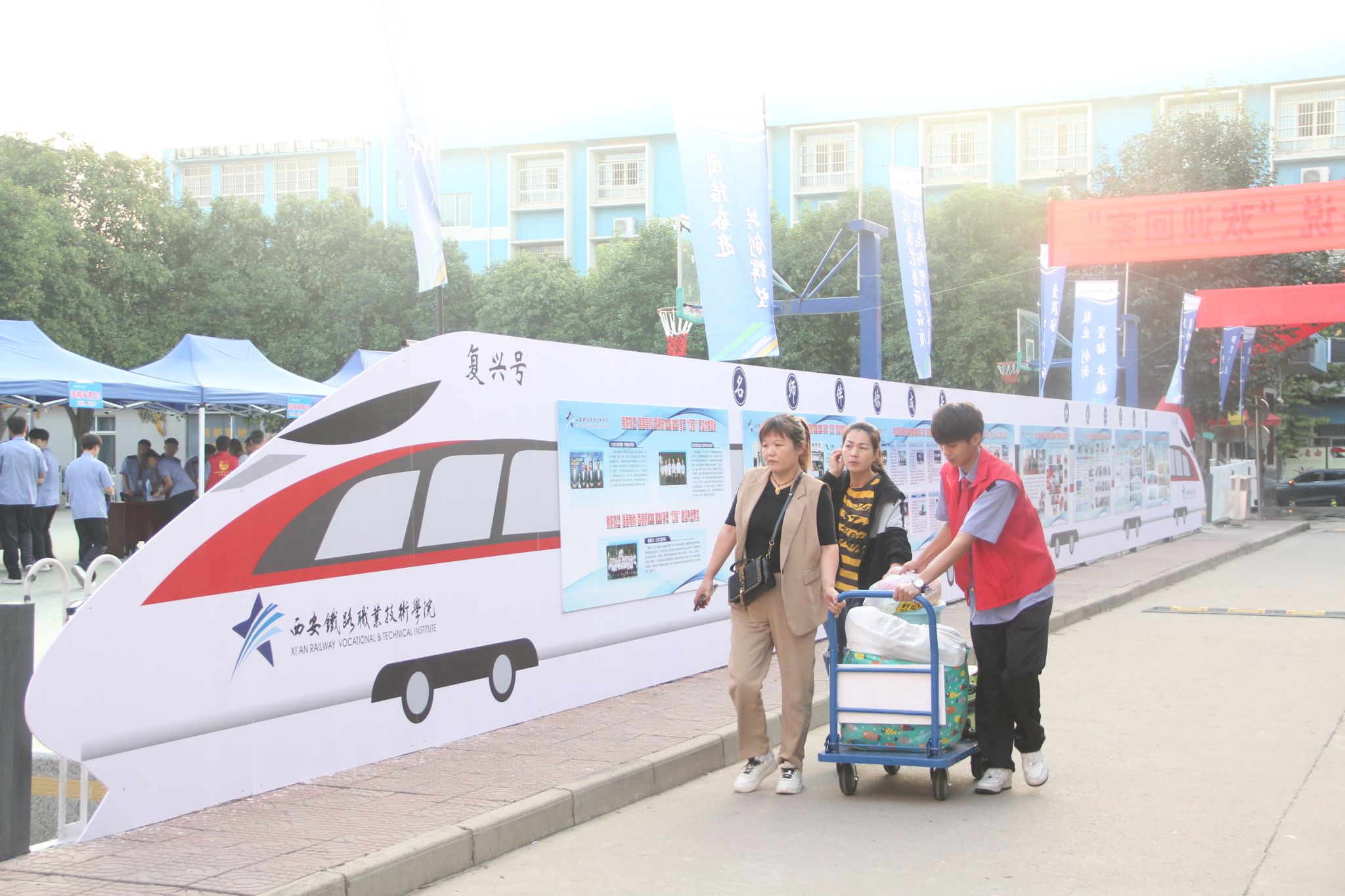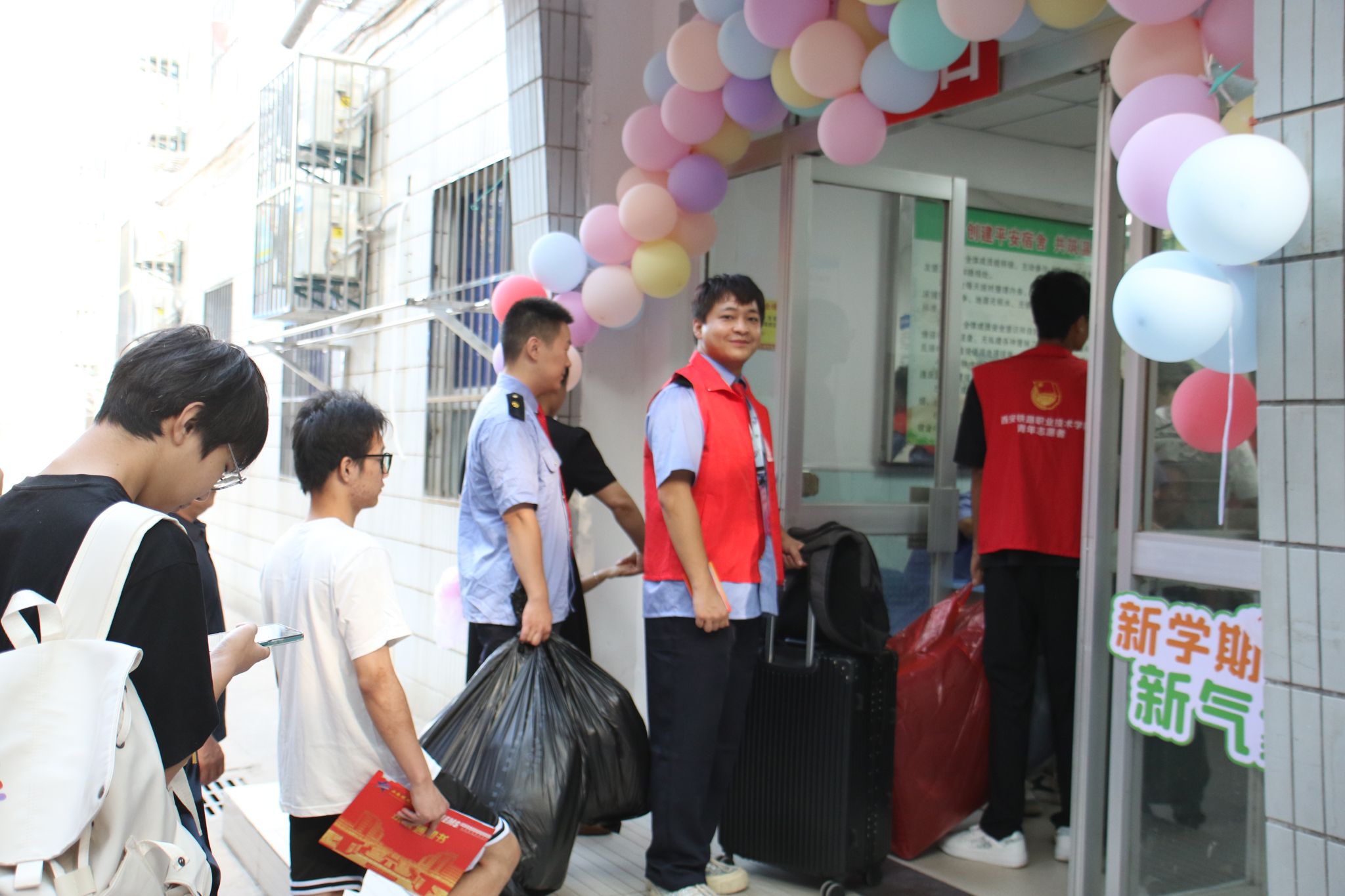 用“心”迎“新”、满“新”欢喜!校区精心布置了欢迎拱门、高铁展板、猎猎彩旗、彩纸灯笼、彩色串旗……多样的迎新形式,营造了喜庆热烈的浓厚氛围。为确保迎新工作平稳有序开展,校区超前谋划、精心准备,利用暑假全面改善了住宿条件和教学设施设备,研究制定了迎新工作方案,组建工作专班,各科室相互配合、通力协作,广大干部职工以高度的责任感和饱满的热情投入迎新工作,全面彻底打扫了宿舍环境卫生,让新生入校后住的舒心、学的安心、家长放心。