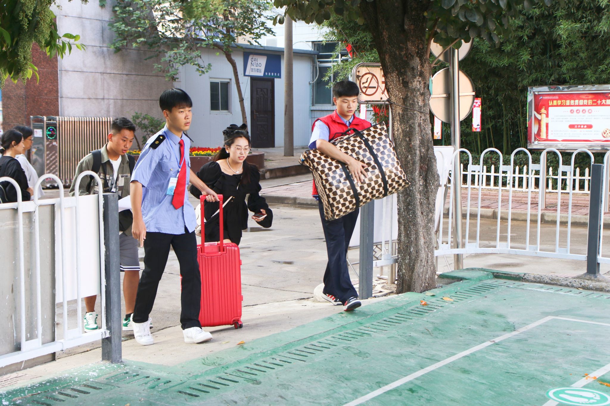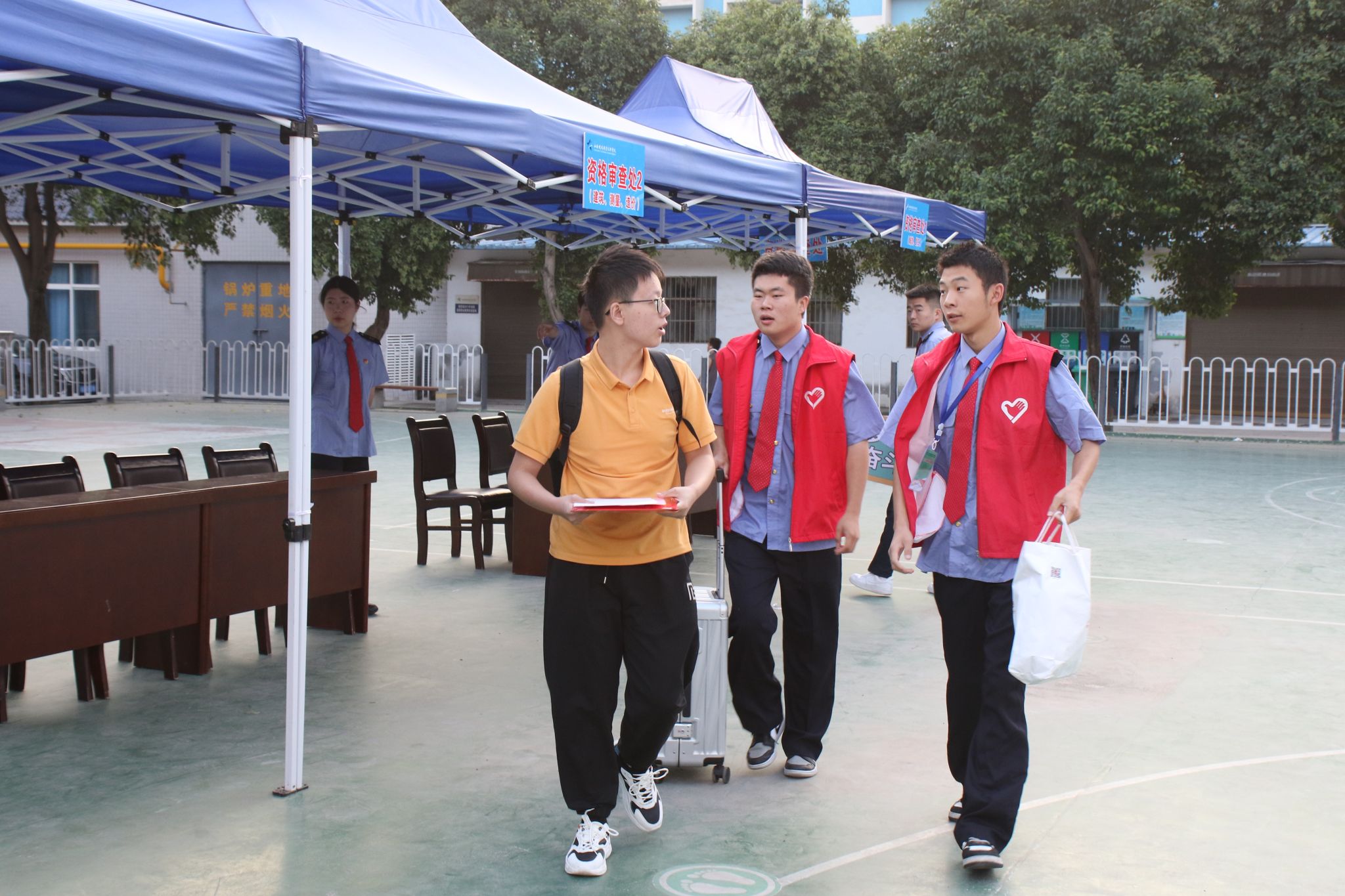 校区129名学生志愿者主动参与新生接待工作,校园内随处可见身着红马甲的志愿者,他们有的热情帮助新生搬运行李,有的主动上前提供报到指引……,勾勒出校园里最靓丽的一道风景线。志愿者们“一对一”的周到服务,让新同学切身感受到家的温暖,让学长和新同学之间的心与心连起来、同学情浓起来。新生及家长们为学校有温度、有情谊、有品质的服务纷纷点赞。