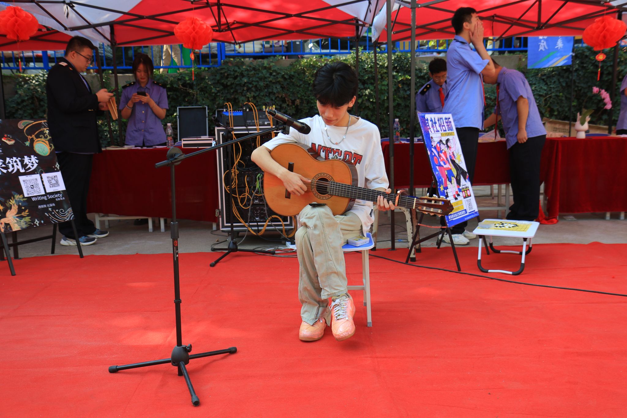 迎新工作中,校区打卡展板、诗词接龙、新生班主任寄语展等形式新颖的活动,引得了不少新生合影互动。同时,大学生艺术团、广播站、摄影社、舞蹈团、青音社等各种社团纳新活动也同步开展,让新同学们看到了社团组织的热情与活力,各社团展示的艺术才华、人文情怀及迸射出来的活力,深深吸引着每一位新同学。同学们纷纷在现场报名,积极成为社团组织的新生力量。