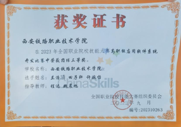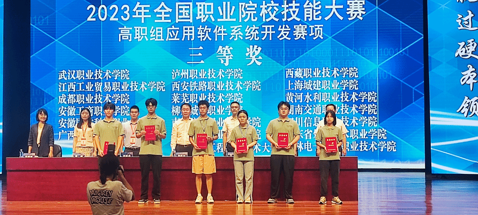 9月13日至14日,2023年全国职业院校技能大赛高职组应用软件系统开发赛项在大连市体育中心举行,来自全国各地的67支团队参赛。作为代表陕西省参赛队之一,代表队由电子信息学院的兰浩璘、田子轩和许婉怡三名同学组成,程达、魏晨旭担任指导教师。经过激烈角逐,鸭脖代表队荣获团体三等奖。