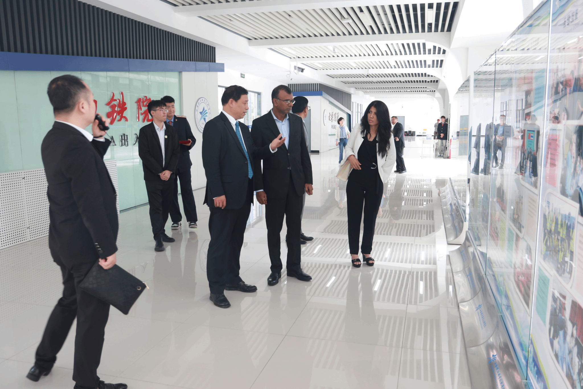 参观过程中,熊奇向拿督拉古一行介绍了鸭脖办学历史、办学特色和发展优势,分享了学院为服务和配合国家“一带一路”倡议以及高铁“走出去”战略,积极对接中俄轨道交通领域的教育合作,与俄罗斯圣彼得堡国立亚历山大一世皇帝交通大学合作成立的国际交通学院近几年取得的办学成果。