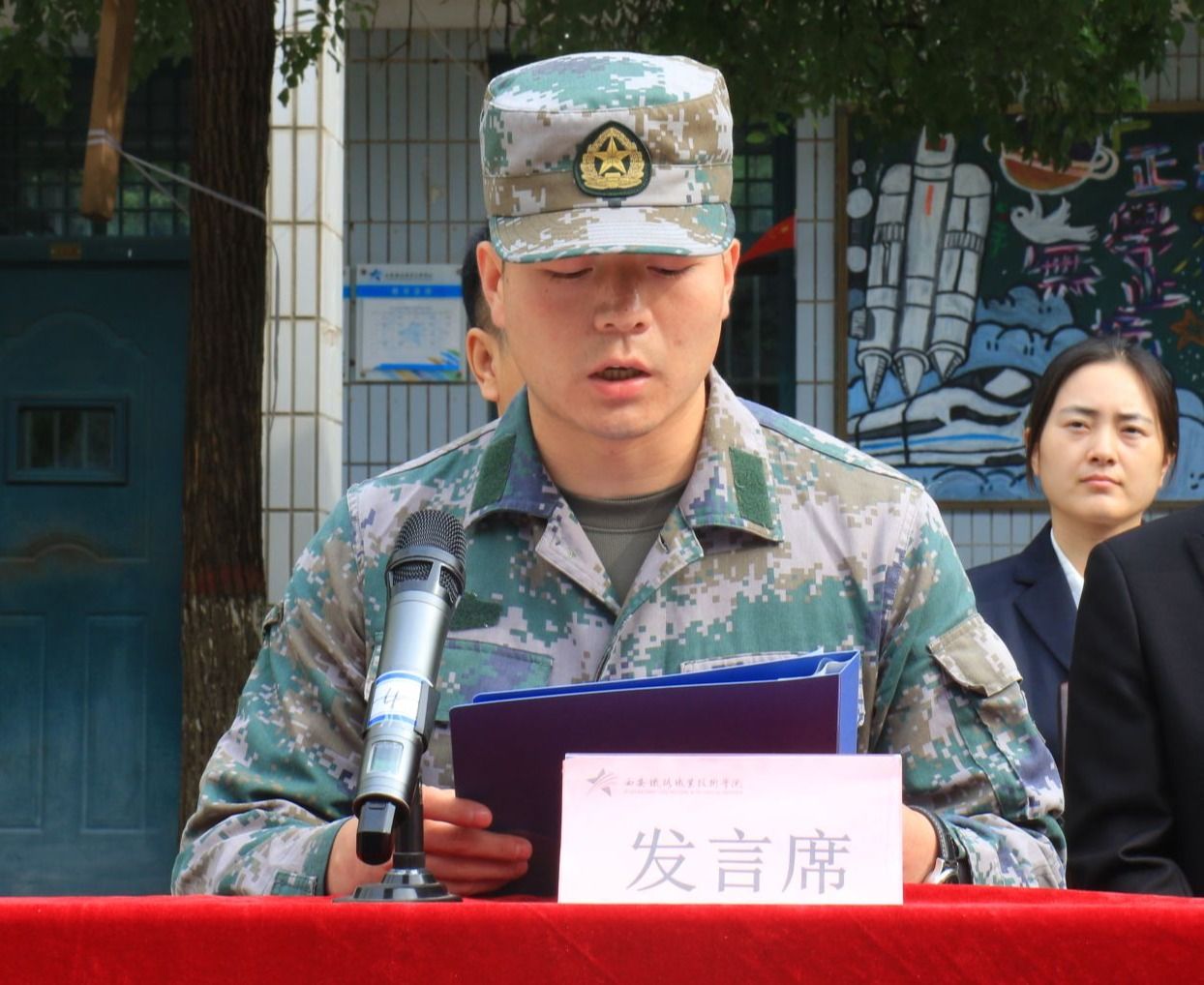 新生代表肖佳晨同学在发言中表示我们即将迎来开学的第一个挑战军训。古人云天将降大任于斯人也,必先苦其心志,劳其筋骨,饿其体肤。军训犹如一场马拉松,没有坚韧的意志,难以到达终点。军训犹如攀登高峰,没有强壮的体魄,难以登临山顶。军训是充满艰辛和汗水的,但它也让我们体验了梦寐以求的军旅生活,磨去了我们的瑕疵和不良习惯,让我们拥有如钢铁般的意志。