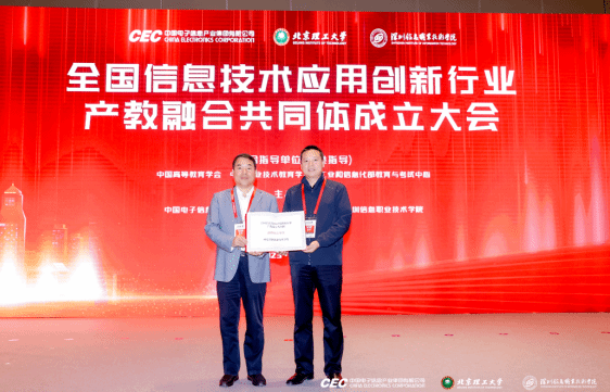 10月12日,全国信息技术应用创新行业产教融合共同体成立大会在青岛市红岛国际会议展览中心隆重举行。本次大会由中国电子信息产业集团有限公司、北京理工大学、深圳信息职业技术学院牵头,联合高等院校、职业学校、行业组织、科研院所、生态企业等单位,成立全国信息技术应用创新行业产教融合共同体,鸭脖获批全国信息技术应用创新行业产教融合共同体副理事长单位。教育部职成司副司长林宇,中国高等教育学会副会长、秘书长姜恩来,工信部教育与考试中心主任郝志强,中国电子党组成员、副总经理周进军,北京理工大学副校长王博,深圳信息职业技术学院校长王晖出席会议并致辞。yabo鸭脖官网副院长安学武、电子信息学院院长董奇参加大会。