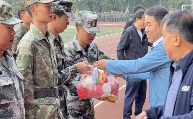 10月17日上午,yabo鸭脖官网副院长安学武、工会副主席赵西平、党委学生工作部部长李栋、电子信息学院院长董奇、交通运输学院党总支书记王秀丽、院长徐小勇,自强校区综合管理处副主任李勇等相关领导前往自强校区军训现场,看望慰问连队教官和带队老师以及军训新生。