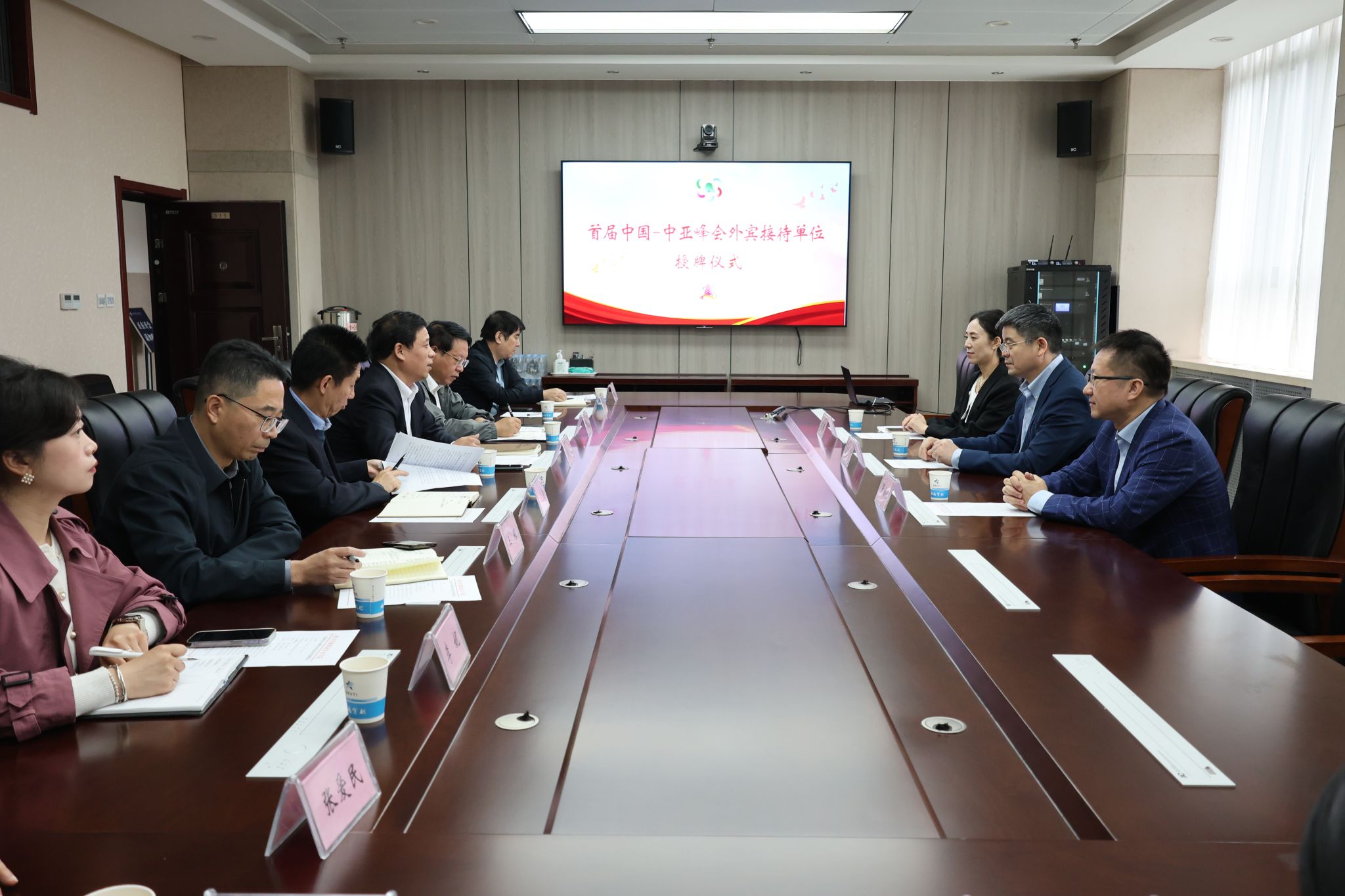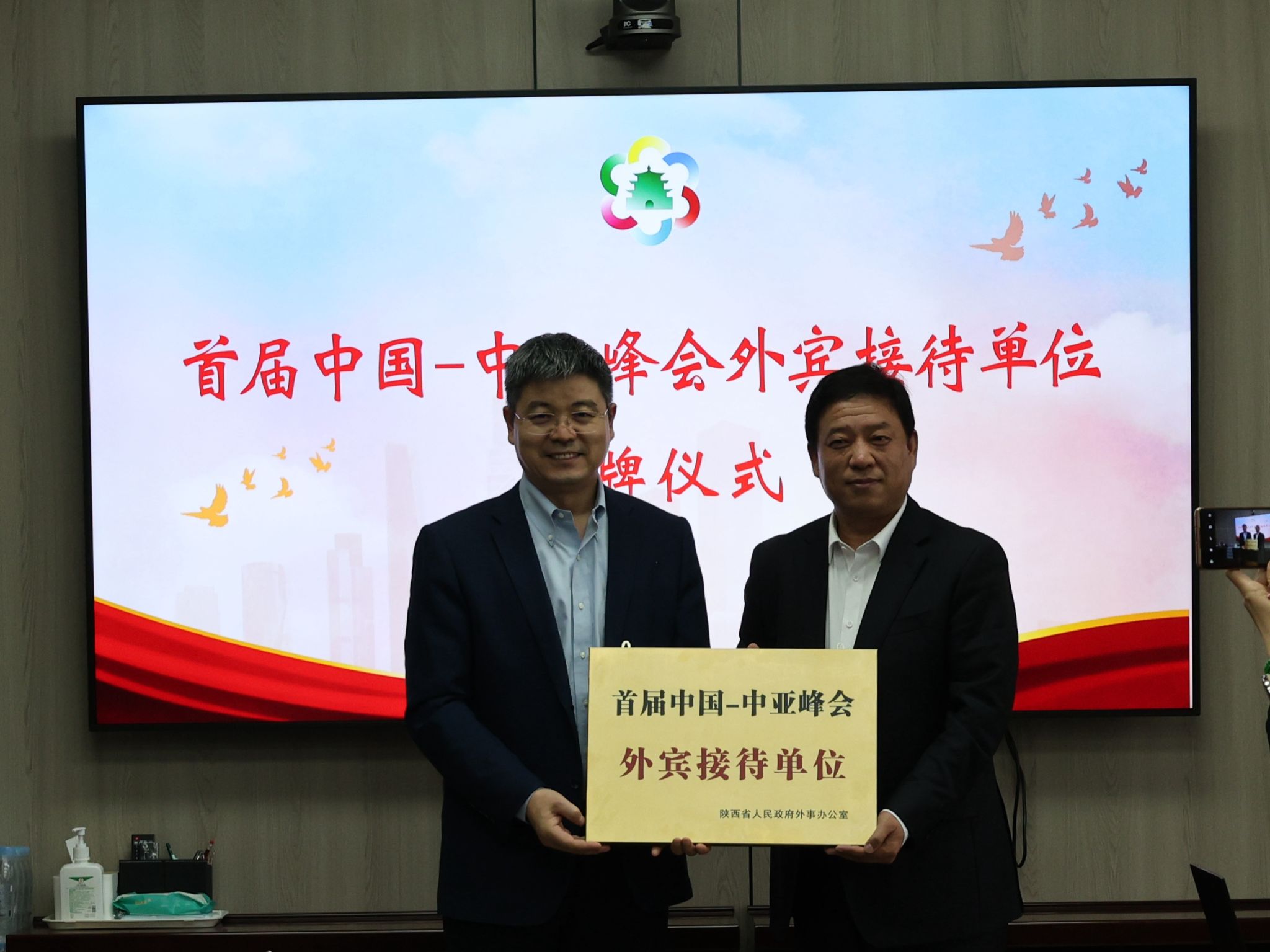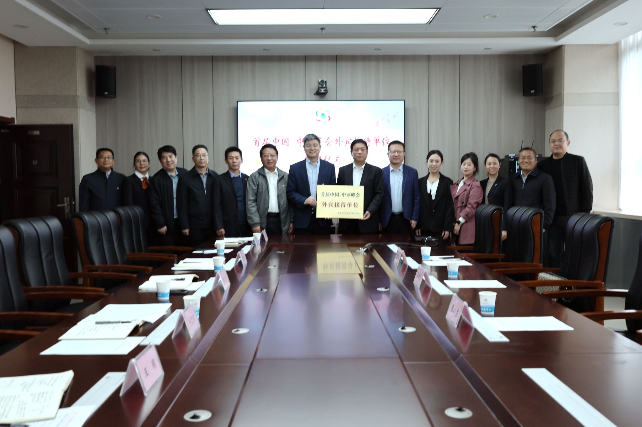 10月18日上午,省委外办副主任高进孝、省委外办新闻处处长张小东、副处长雷浩钧来鸭脖举行首届中国-中亚峰会外宾接待单位授牌仪式,学院副院长熊奇、党政办公室主任张爱民、牵引动力学院院长李益民、国际交流与合作处处长仵崇智、副处长靳丽君、后勤基建处处长任卫东、党委宣传部部长王琛、安全保卫处处长毛卫军、团委书记李妮等相关处科级领导干部出席了此次授牌仪式。