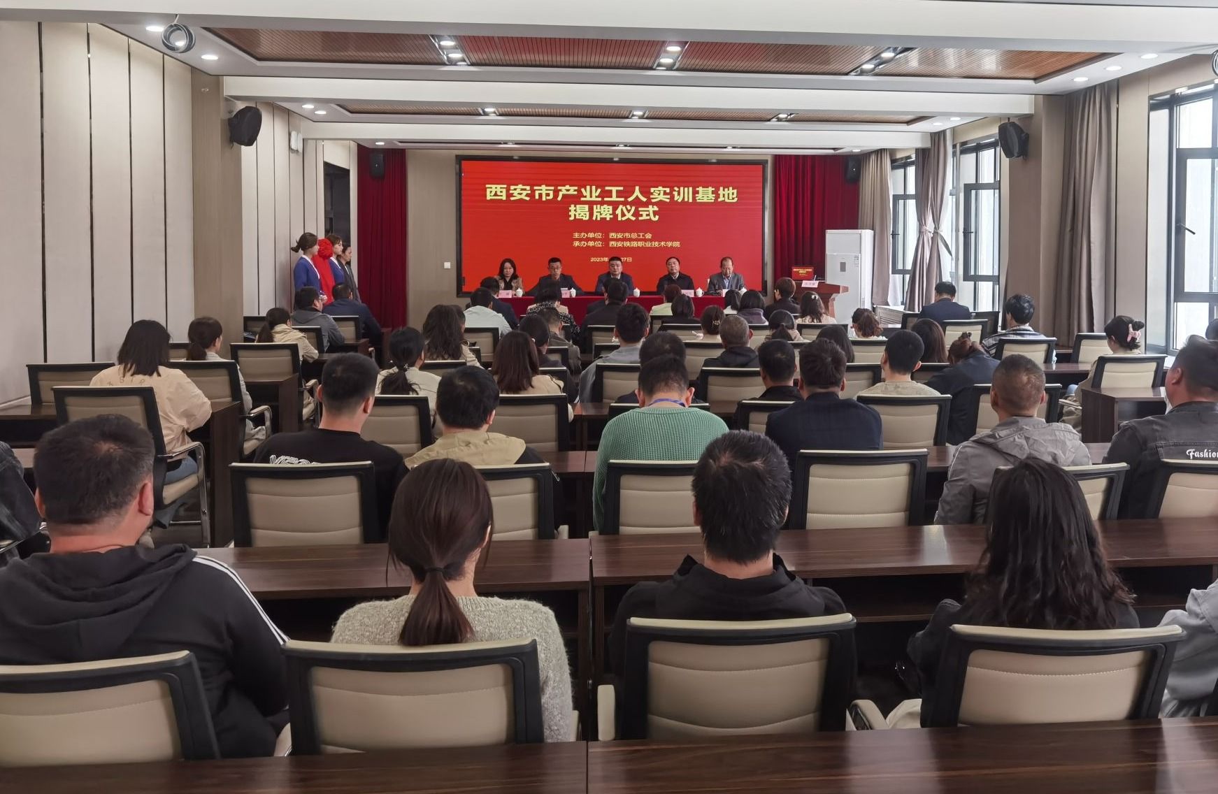 最后,王雷和施利民分别代表市总工会、yabo鸭脖官网,为“西安市产业工人实训基地”成立揭牌。