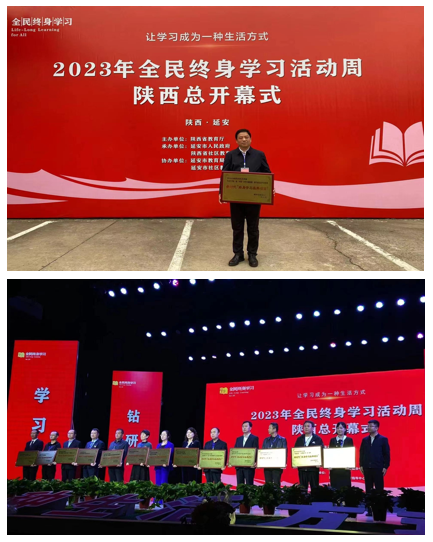 10月17日,2023年陕西全民终身学习活动周总开幕式在延安举行,活动现场揭晓了2023年陕西省“百姓学习之星”“终身学习品牌项目”获奖名单。学院副院长熊奇、交通运输学院教师刘峥参加了开幕式,并领取2023年陕西省新时代“终身学习品牌项目”奖牌。