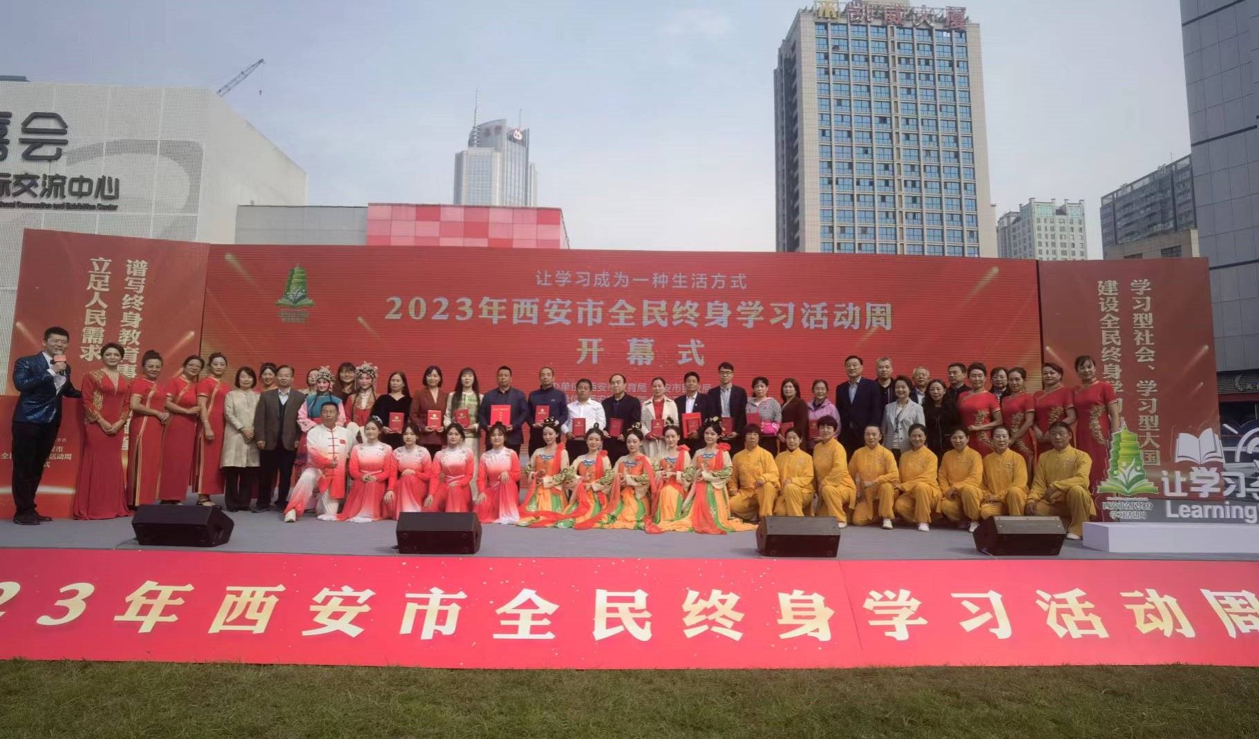 10月27日,由西安市教育局、西安市民政局主办的2023年西安市全民终身学习活动周在西安高新区嘉会坊隆重开幕。在全民终身学习活动周启动仪式上,学院副院长熊奇作为2023年国省市“终身学习品牌项目”(《手语讲思政》)获奖单位领导做交流发言,“终身学习品牌项目”实施者交通运输学院教师刘峥上台领奖,交通运输学院学生《手语舞蹈:灯火里的中国》作为西安市终身教育成果在舞台上倾情展演。