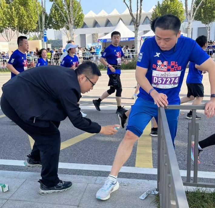新赛道融合展现了城市的历史文化魅力、生态文明建设成就了对外开放活力。为助力西安市形象宣传、展示西安综合实力和运动精神,助力学院创建全国“文明校园”工作,展现学院教师积极向上的精神风貌,以实际行动传递爱心、传播文明,院工会协助健康跑团组织未中签参赛的10余名跑团成员组成志愿者服务队,服务西马赛事,为参赛群众发放矿泉水、创可贴,喷洒止疼喷雾,周备医疗用品保驾护航,并负责指引道路、维护秩序等工作,为比赛顺利进行提供了热情周到的服务。