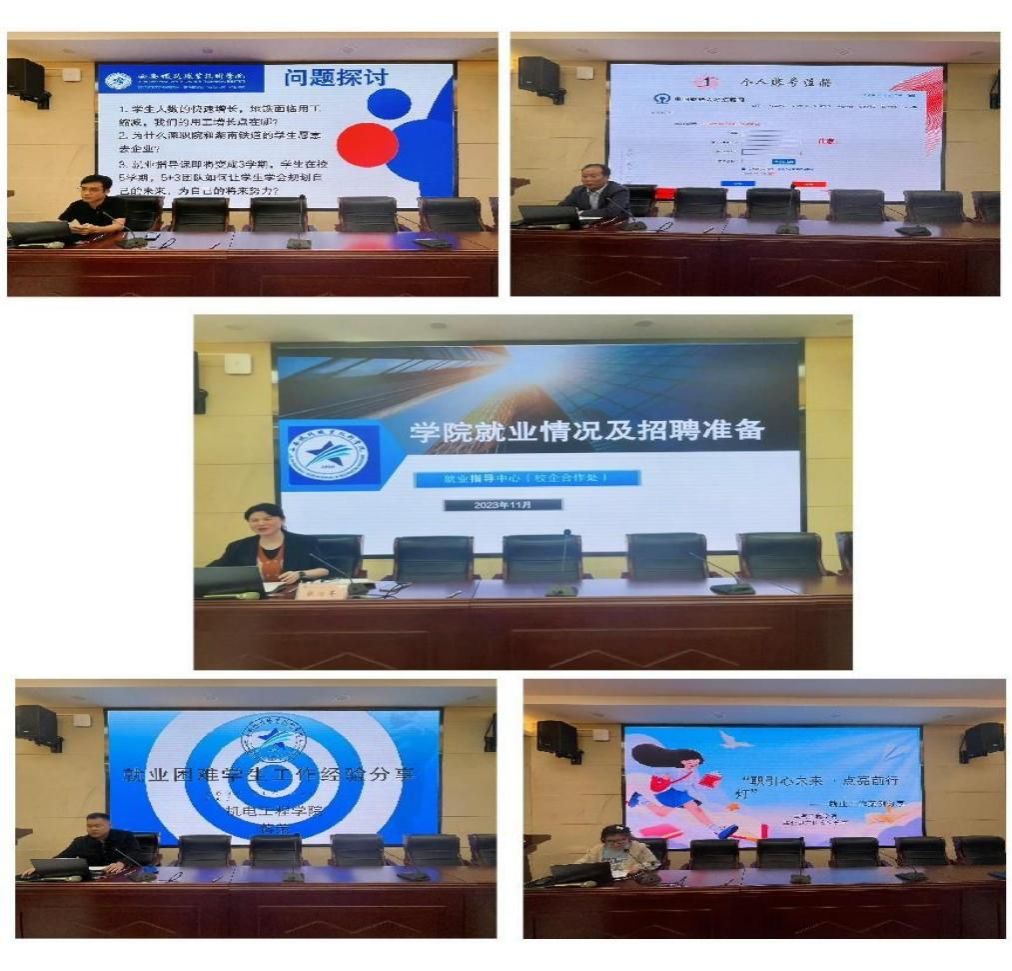 随后,就业指导中心科长曾小莉、副科长王凯分别就帮助毕业生做好应聘资料准备、签订就业协议书、就业数据统计等业务规范标准,并提出了三个问题,与各二级学院的辅导员和班主任一起进行讨论;牵引动力学院辅导员刘文峰分享了招聘面试网上报名相关流程,及特别需要注意的事项;机电工程学院班主任蒋荣分享了如何做好困难学生就业工作;电气工程学院毕业班班主任郑华丹分享自身推进就业工作具体案例经验等。