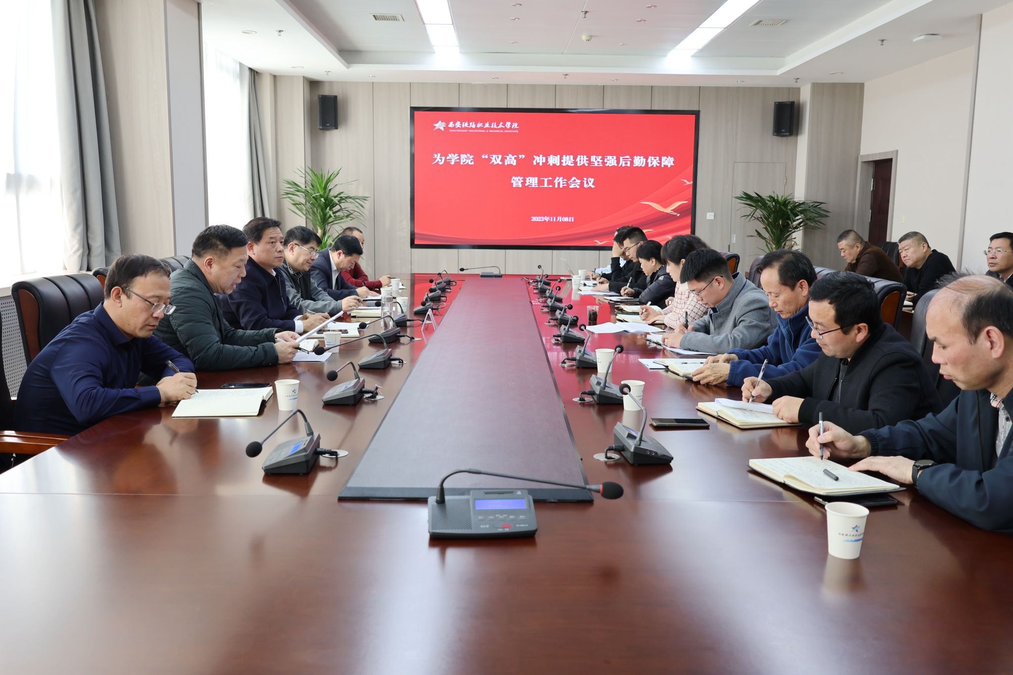 为进一步扎实、细致做好后勤基建各项工作,落实好“精技强能、精细管理、精准服务”总要求,提升服务质量,提高服务效能。11月8日,学院在港务校区召开为“双高”冲刺提供坚强保障管理工作会议,学院副院长熊奇出席并主持会议。后勤基建处处长任卫东、副处长李永辉、自强综合管理处副处长李勇、副处长刘林,临潼校区党总支书记兼主任张军及各校区后勤科级以上干部参加会议。