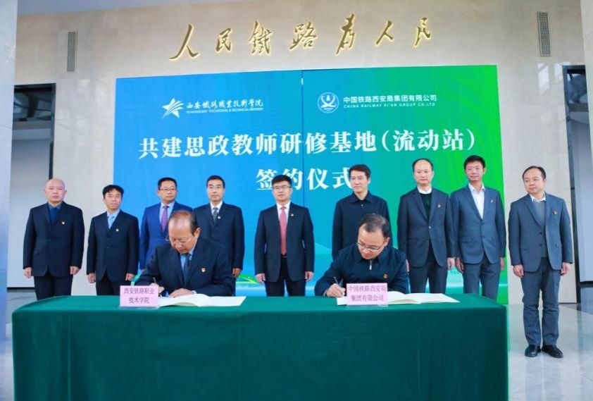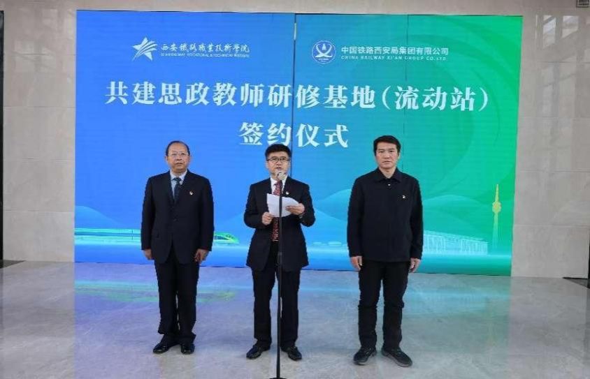 随后,学院党委副书记任治军与西安铁路局党委宣传部部长伍斌分别代表双方签署共建协议,西安铁路局党委副书记郭颂章和院长赵春平为共建基地和流动站揭牌。