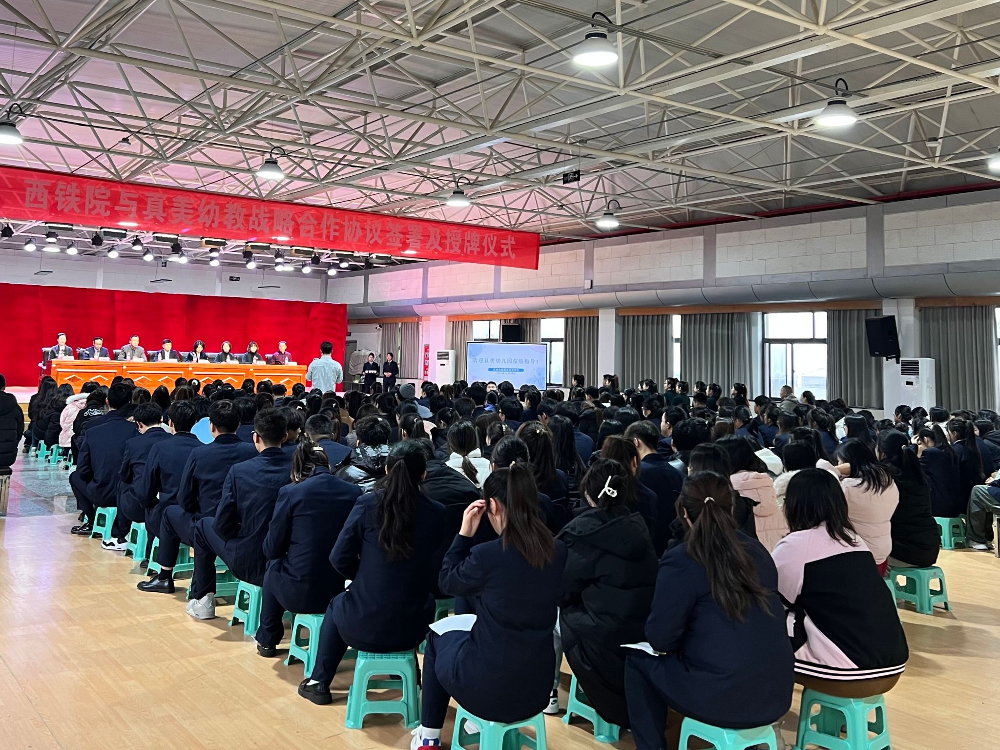 为促进2025届学前教育毕业生高质量就业。12月14日,学院基础部与西安真美幼儿园就业合作签约暨揭牌仪式在龙首校区举行。真美幼教总园长周美慧、学院院长赵春平、纪委书记邓轩出席仪式,校企合作处处长张治平、基础部主任孙明魁、综合管理处副处长刘林参加。仪式由基础部副主任张博雅主持。