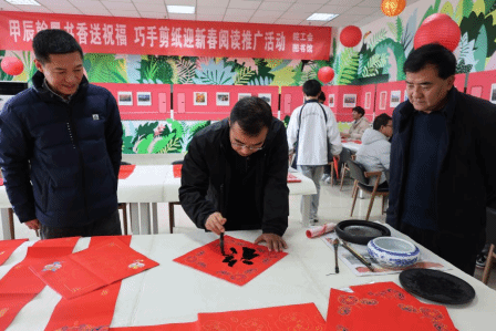 随后,进入书法、剪纸体验环节。师生们现场铺纸、蘸墨、起笔……以笔寄意、以字传情,寄手成春、纸上生情,满满的红色春联和“福”字既承载了对辞旧迎新的美好祝愿,又彰显书法艺术的魅力和对传统节日及文化的认同感。本次活动为教职工们送出了100余幅春联和“福”字。